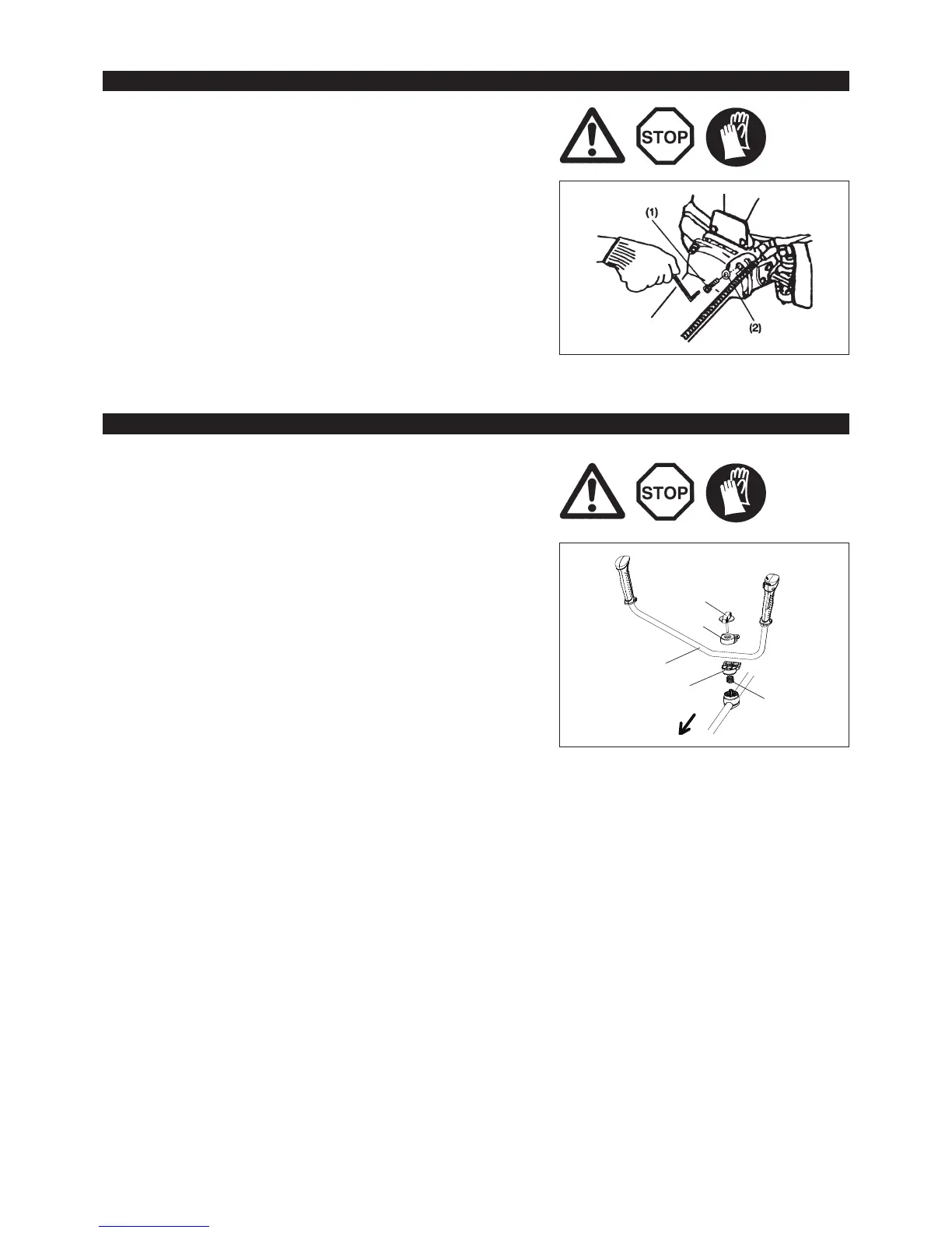 FORSIGTIG: Inden du udfører arbejde på buskrydderen, skal du altid stoppe