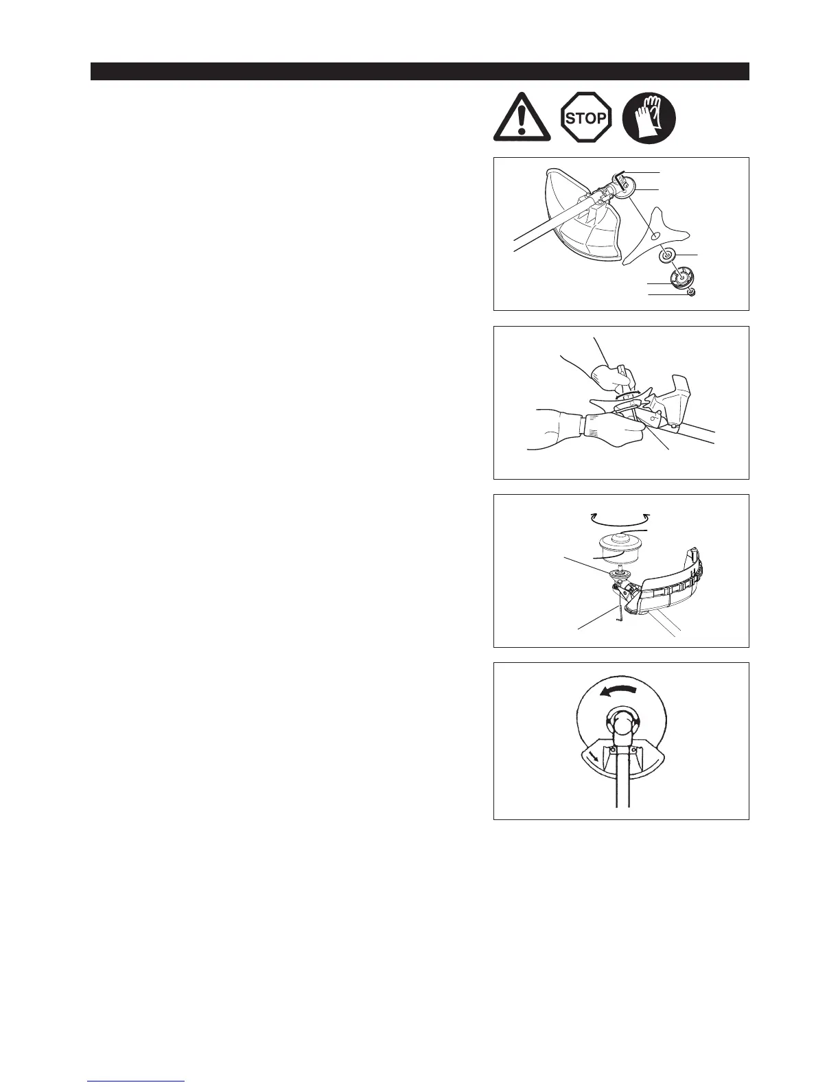 Skru derefter nylontrimmerhovedet på skaftet ved at dreje det mod urets retning. –