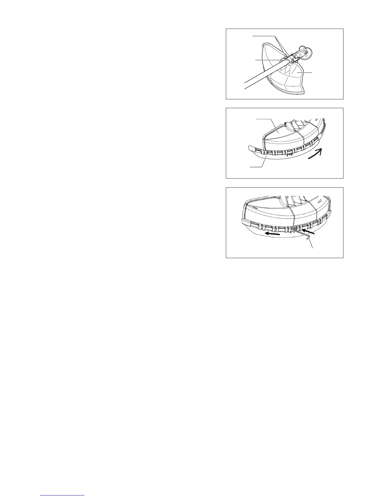 Misinalı kesim başlığı kullanılacaksa, metal bıçak koruyucusuna (3) misinalı –