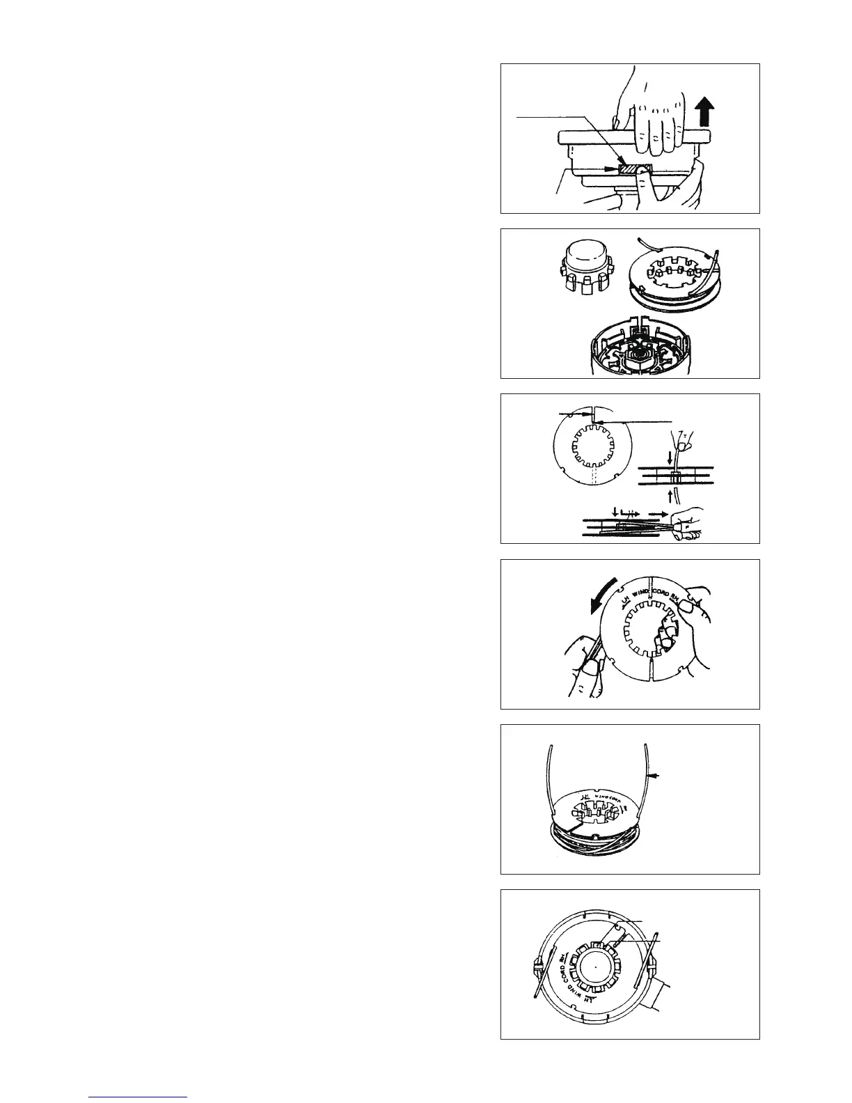 4. Szorosan tekerje fel a szálakat a peremen a bal oldali (LH) nyíl irányába. Ne