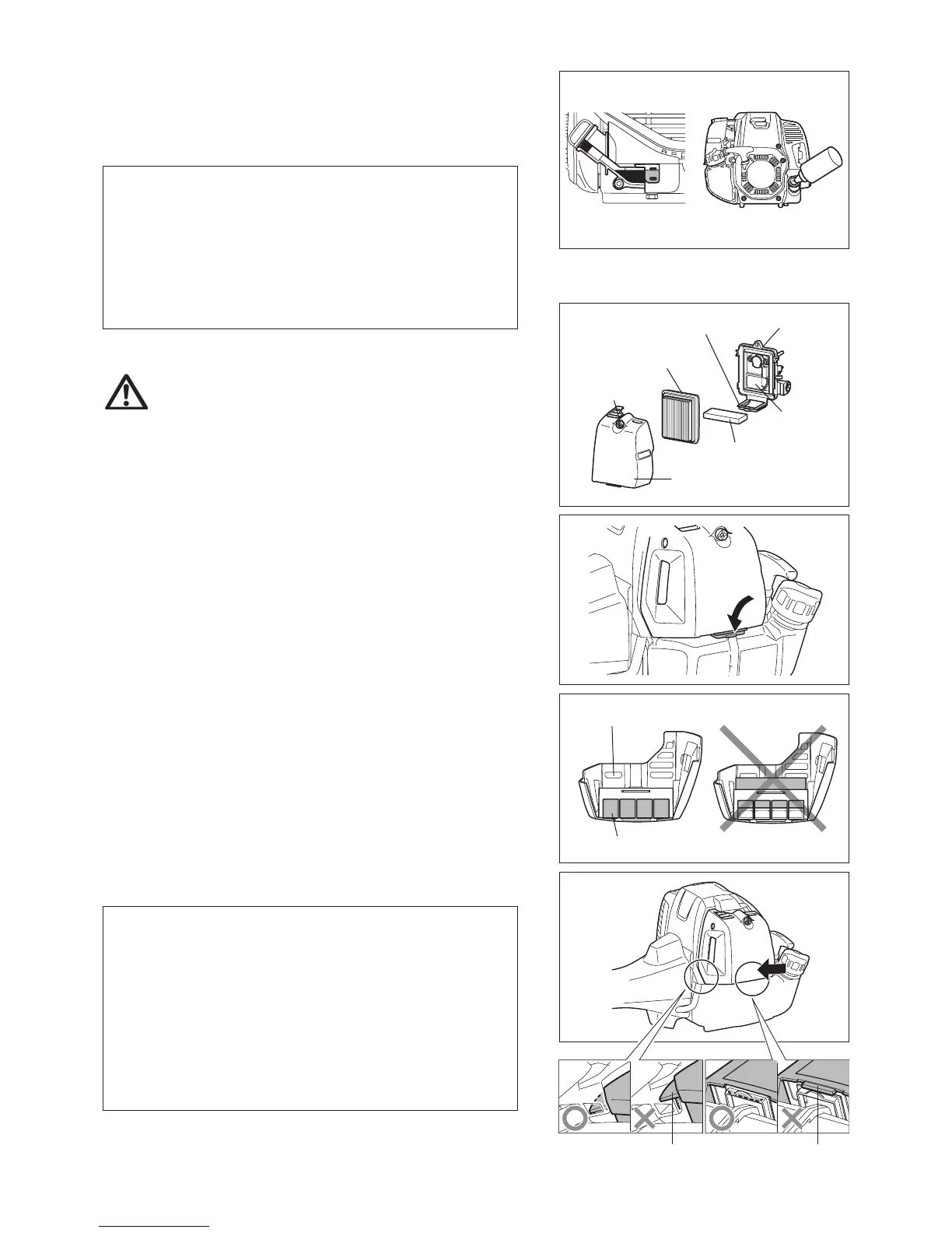 Вивільніть гачок на кришці повітряного фільтру, натиснувши петлю на корпусі. –