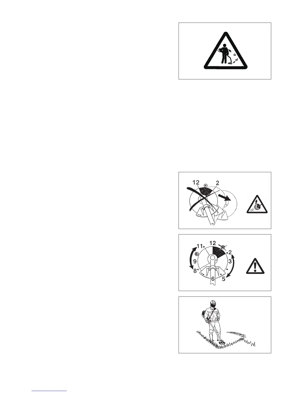 Când utilizaţi lame metalice, balansaţi motocositoarea uniform în semicercuri –
