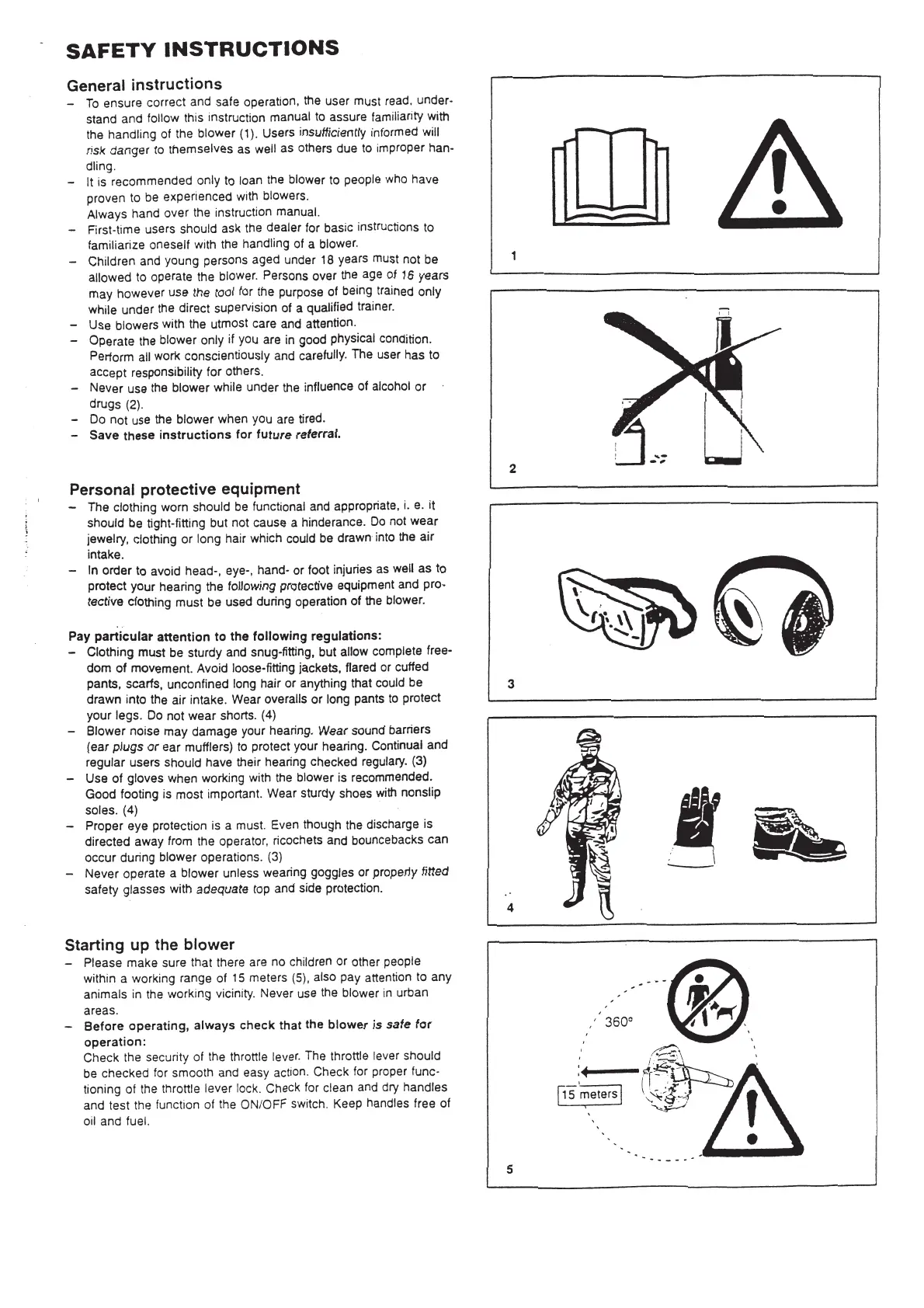 Dolmar PB-250 - SAFETY INSTRUCTIONS; General Safety Instructions; Personal Protective Equipment; Starting Up the Blower