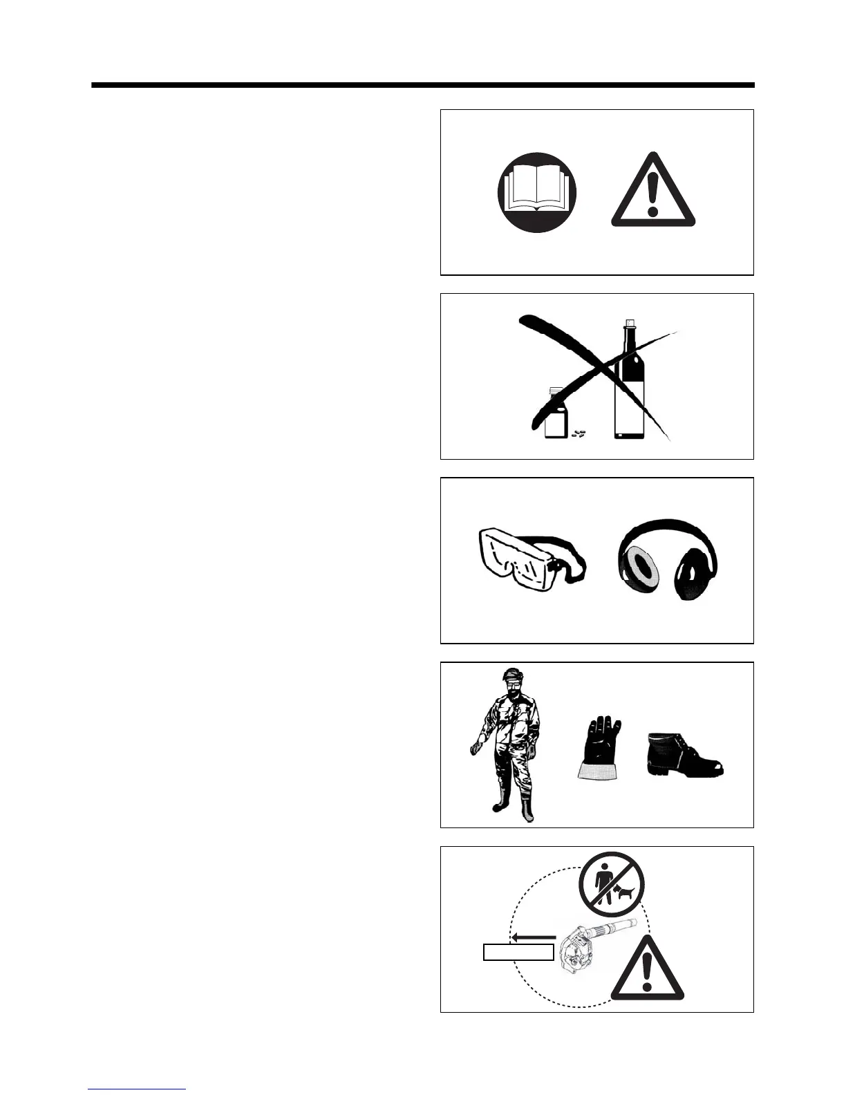• Never use the blower while under the influence of alcohol or drugs (2).
