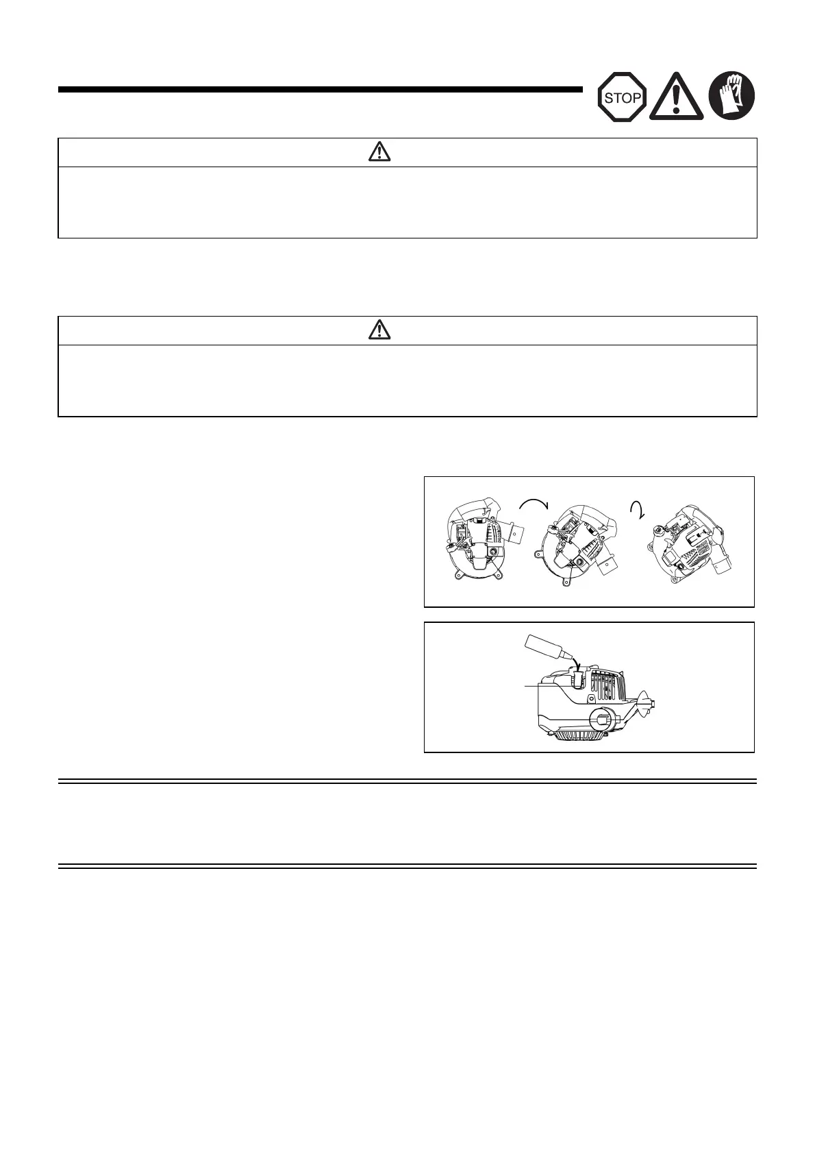 main unit and engine oil are sufficiently cooled down. Otherwise, there may remain a risk of scald. Allow sufficient time after stopping engine