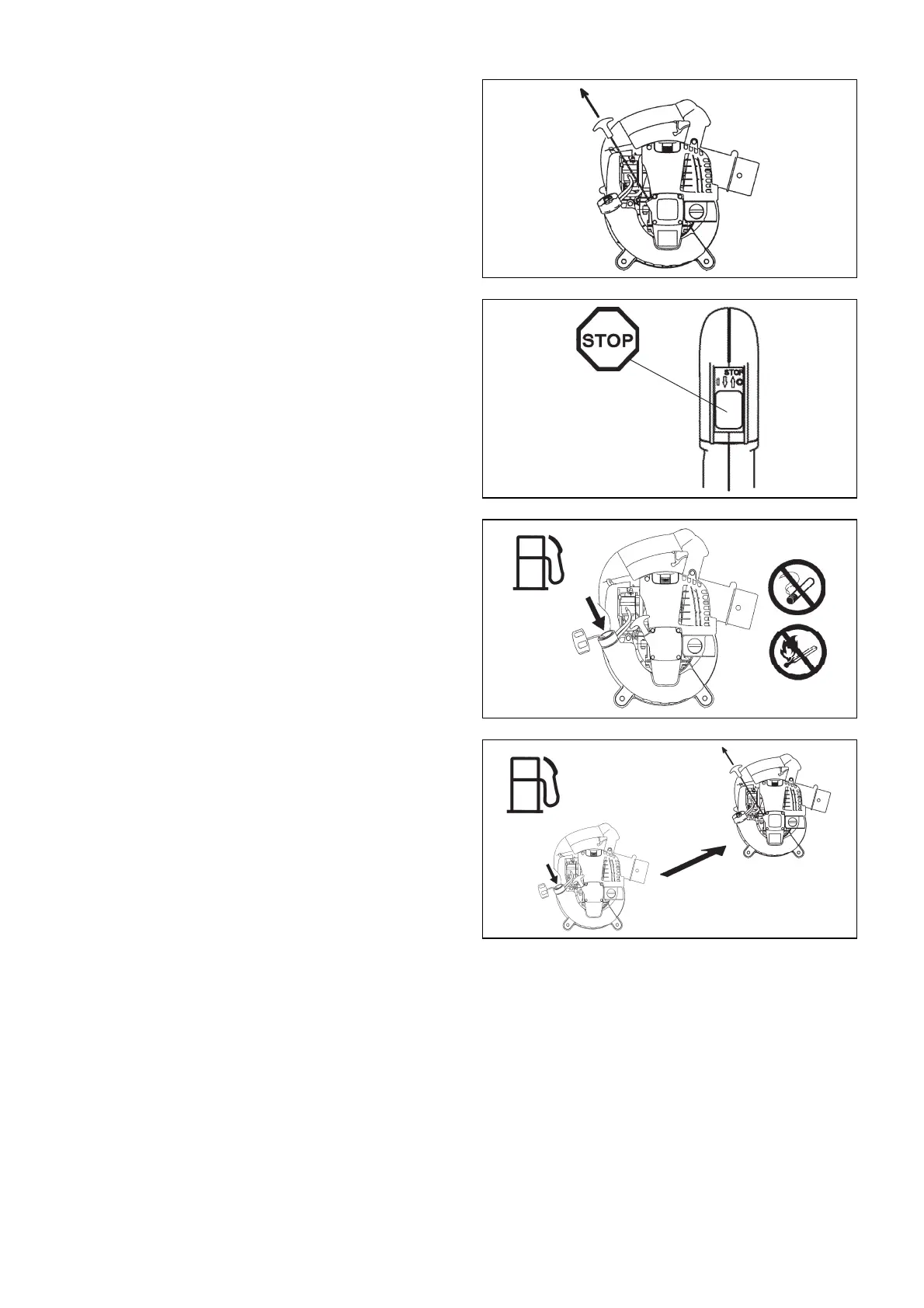 • Bei heißem oder laufendem Motor darf das Blasgerät nicht betankt