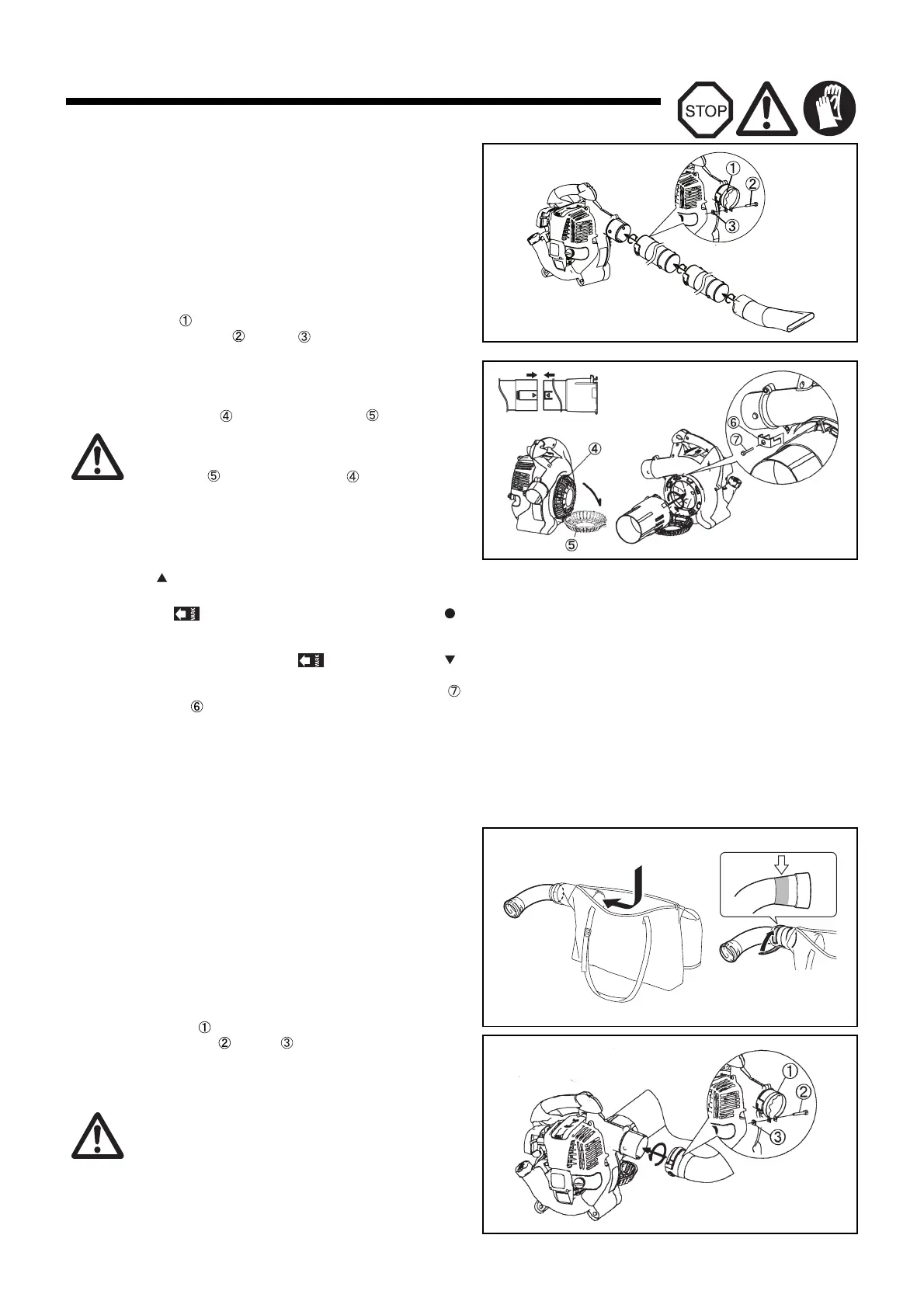 CAUTION : Start the blower only after having assembled it com-