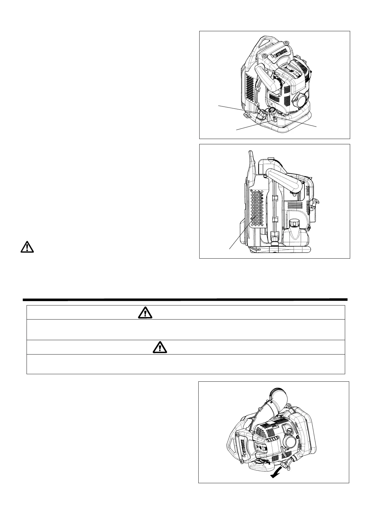 • Lors de décharger le carburant, prendre garde à arrêter le moteur et confirmer que le moteur se refroidit.