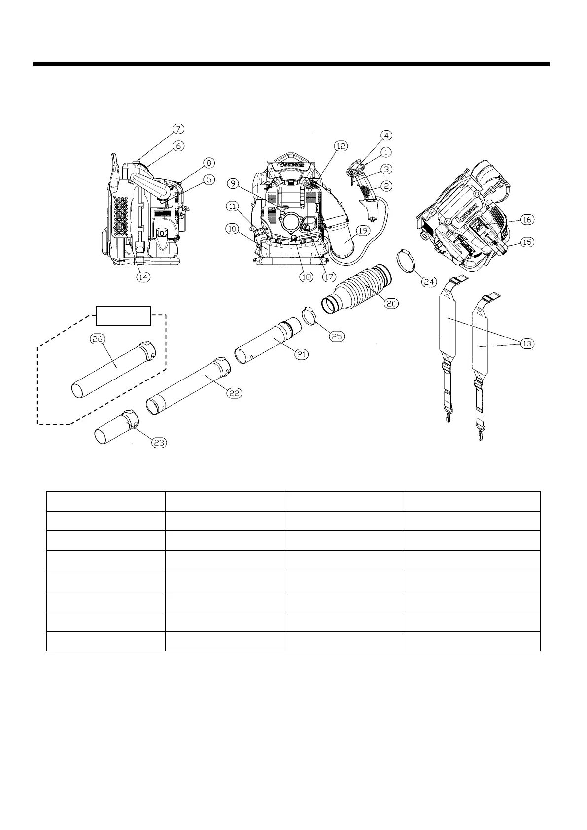 1. Interrupteur d’arrêt 8. Levier d’étrangleur 15. Capot de bougie 22. Tube de souffleur