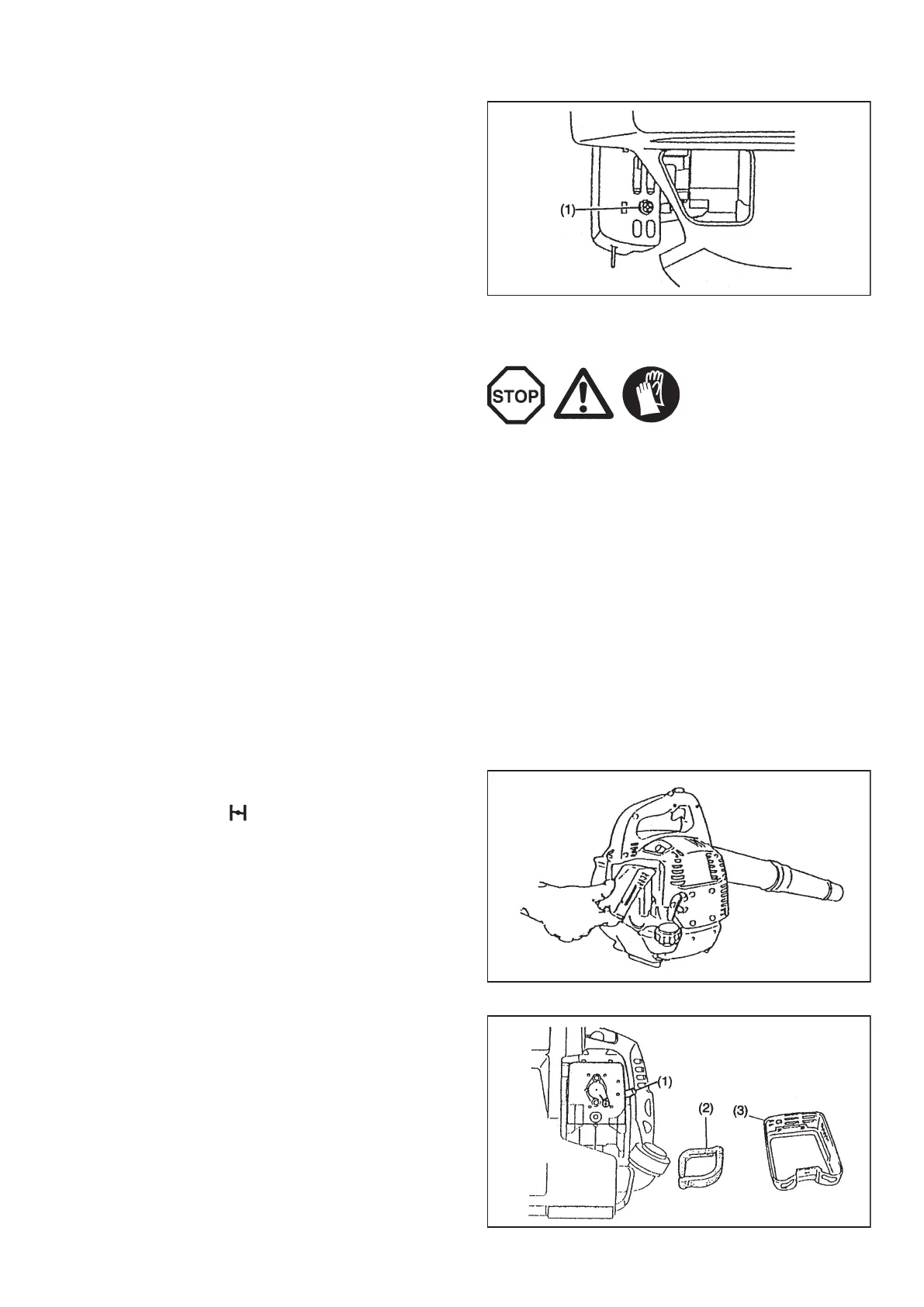 If engine stops while idling, turn the idle adjusting screw (1) clockwise