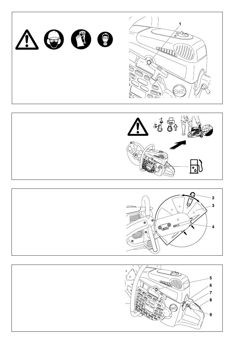 Press the throttle lock (7) and release the throttle (9) (the throttle