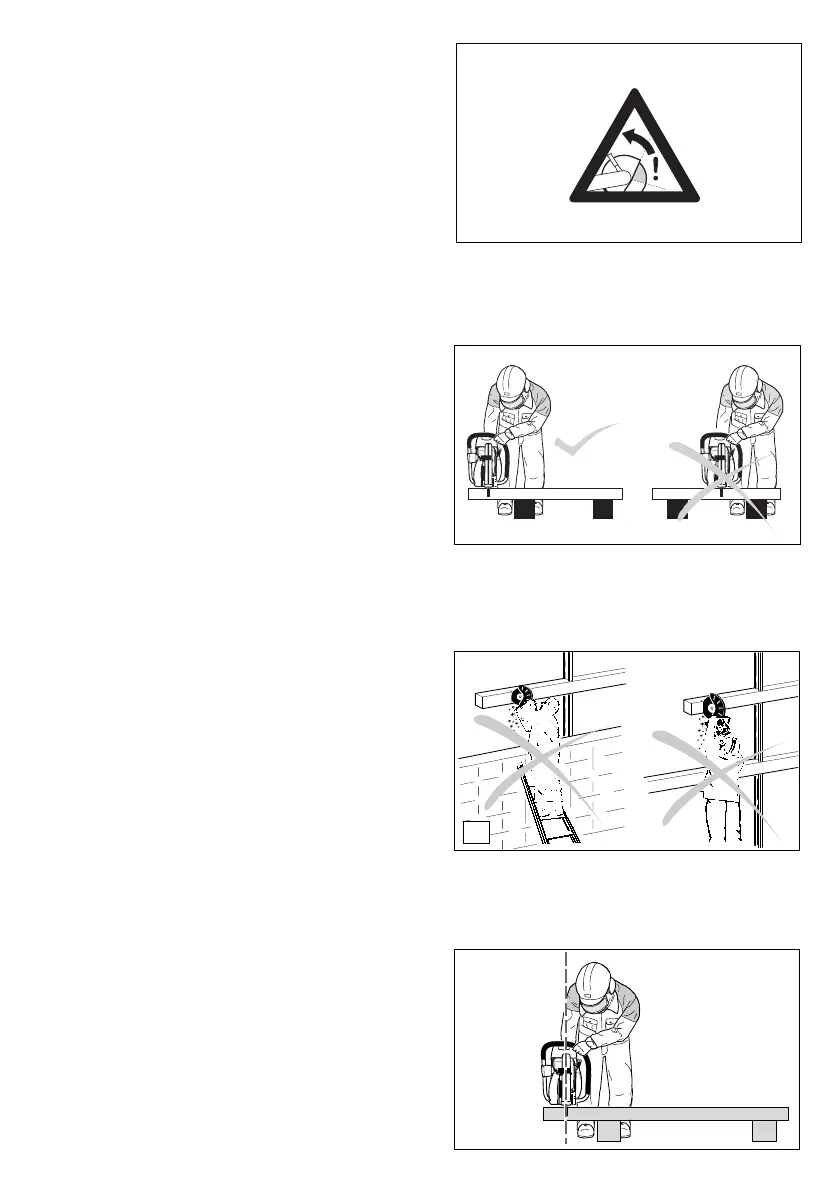- Never cut with the section of the cutting disc shown in Þ gure 15.