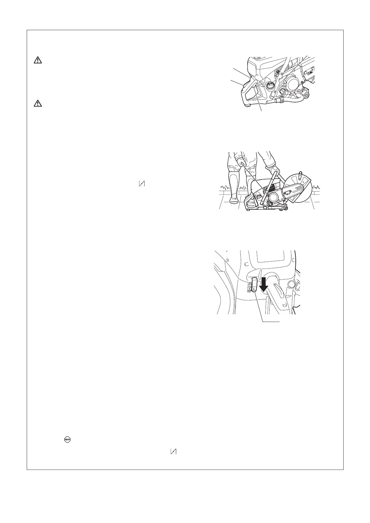 • Όταν σταματά ο κινητήρας, ποτέ μην πιέζετε το μοχλό του