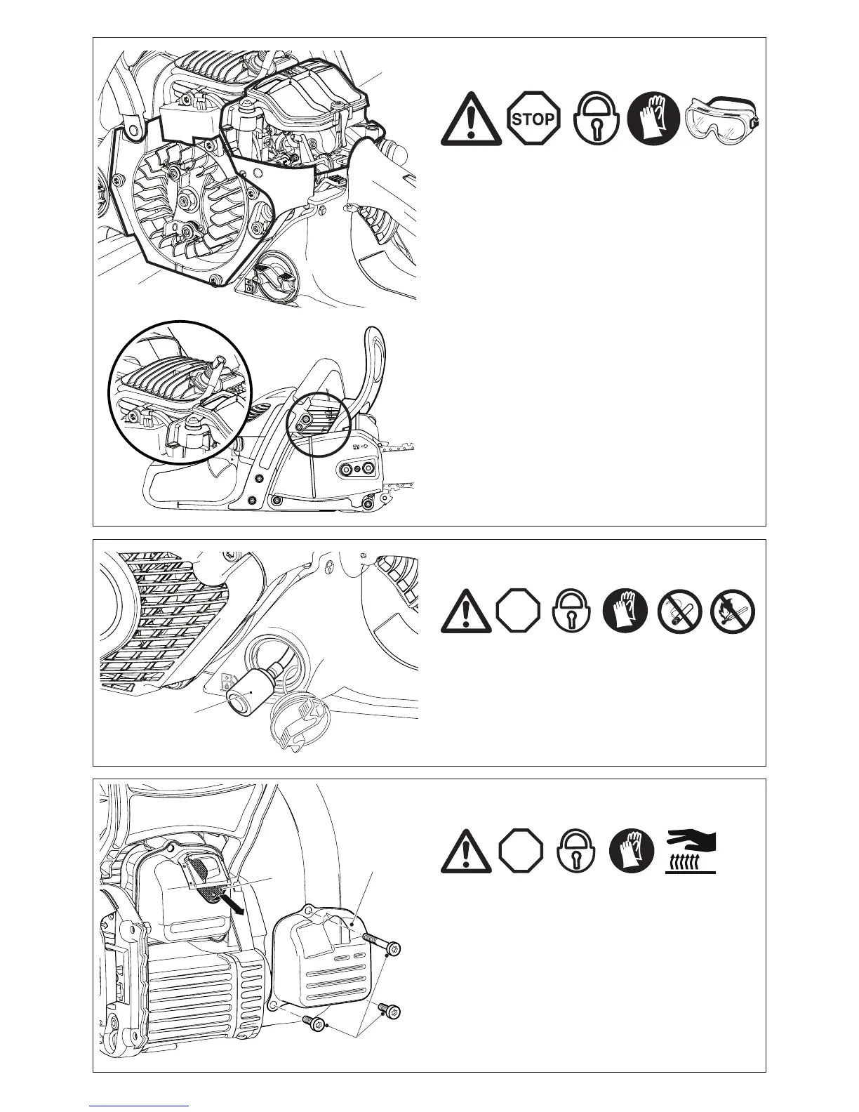 Vuelva a montar la rejilla parachispas, el escudo térmico y