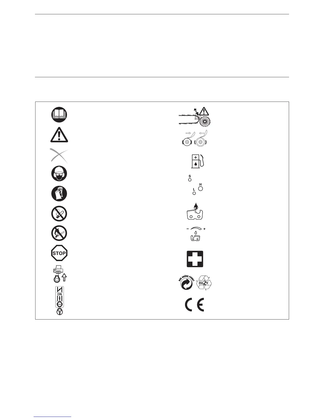 Sie werden auf der Motorsäge und beim Lesen der Betriebsanleitung auf folgende Symbole stoßen: