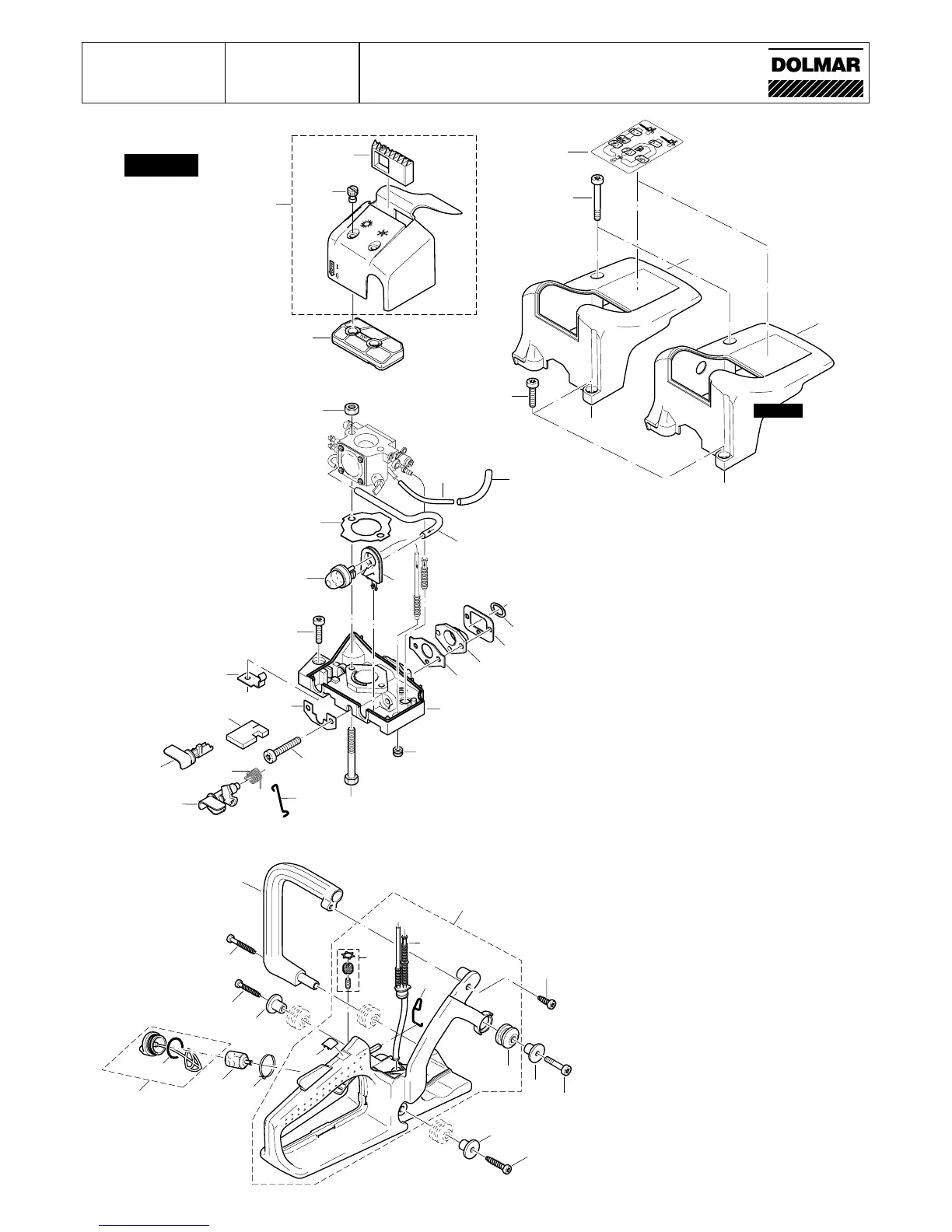 Capot protecteur, filtre à air, réservoir carburant, poignée tubulaire