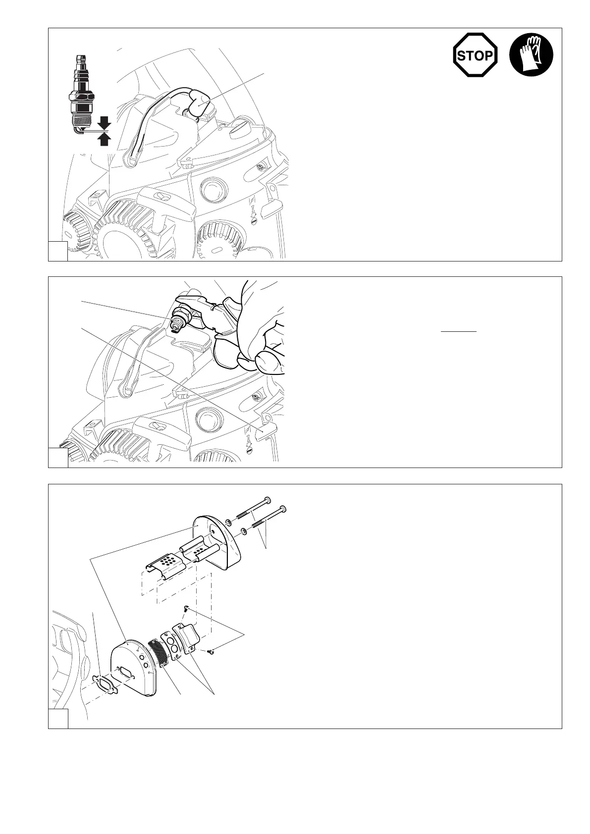 Unscrew screws (7) and remove the deector (8) and the spark