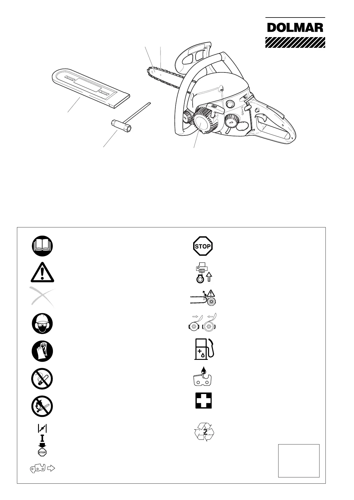 You will notice the following symbols on the chain saw and in the Owner’s and Safety Manual: