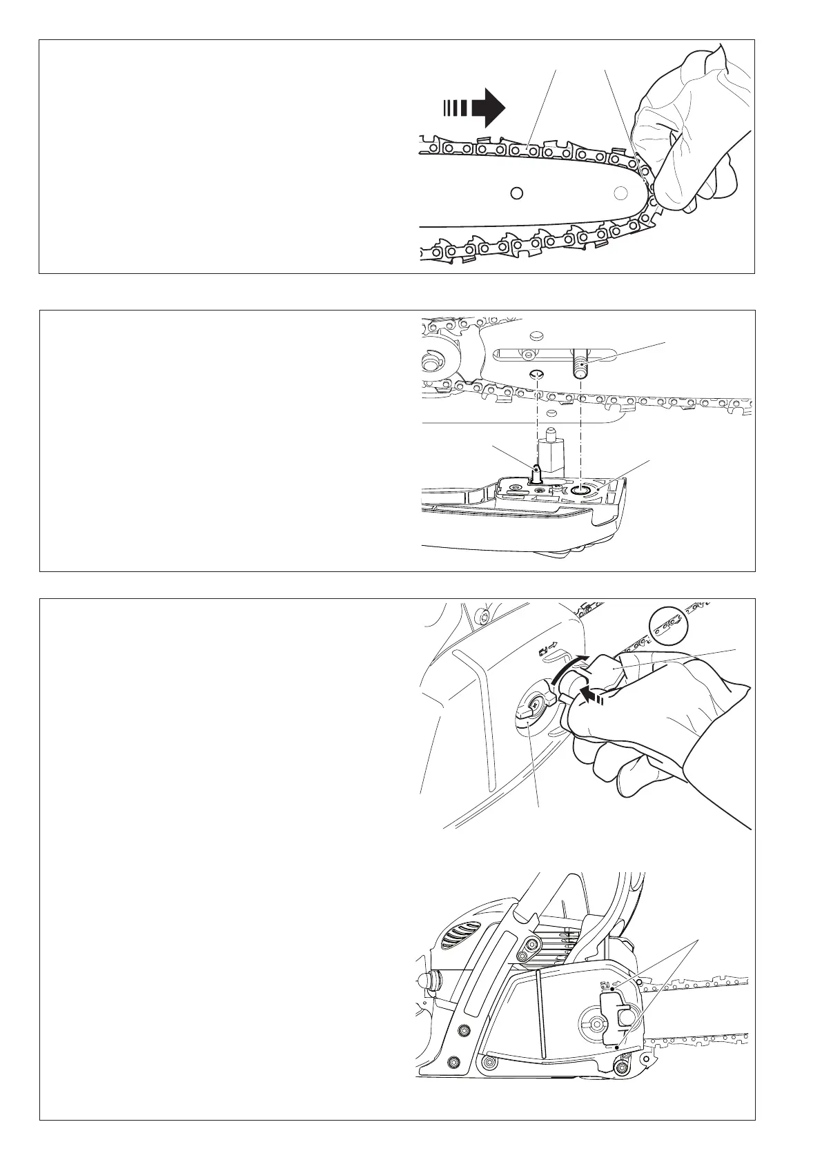 Turn the chain tensioner (3, see ”Tightening the saw chain”) to