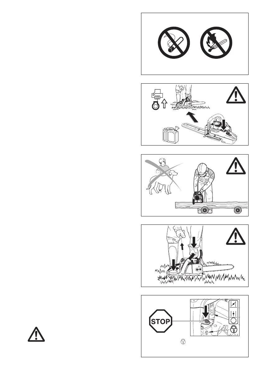 - Stop the engine before refuelling the chain saw.