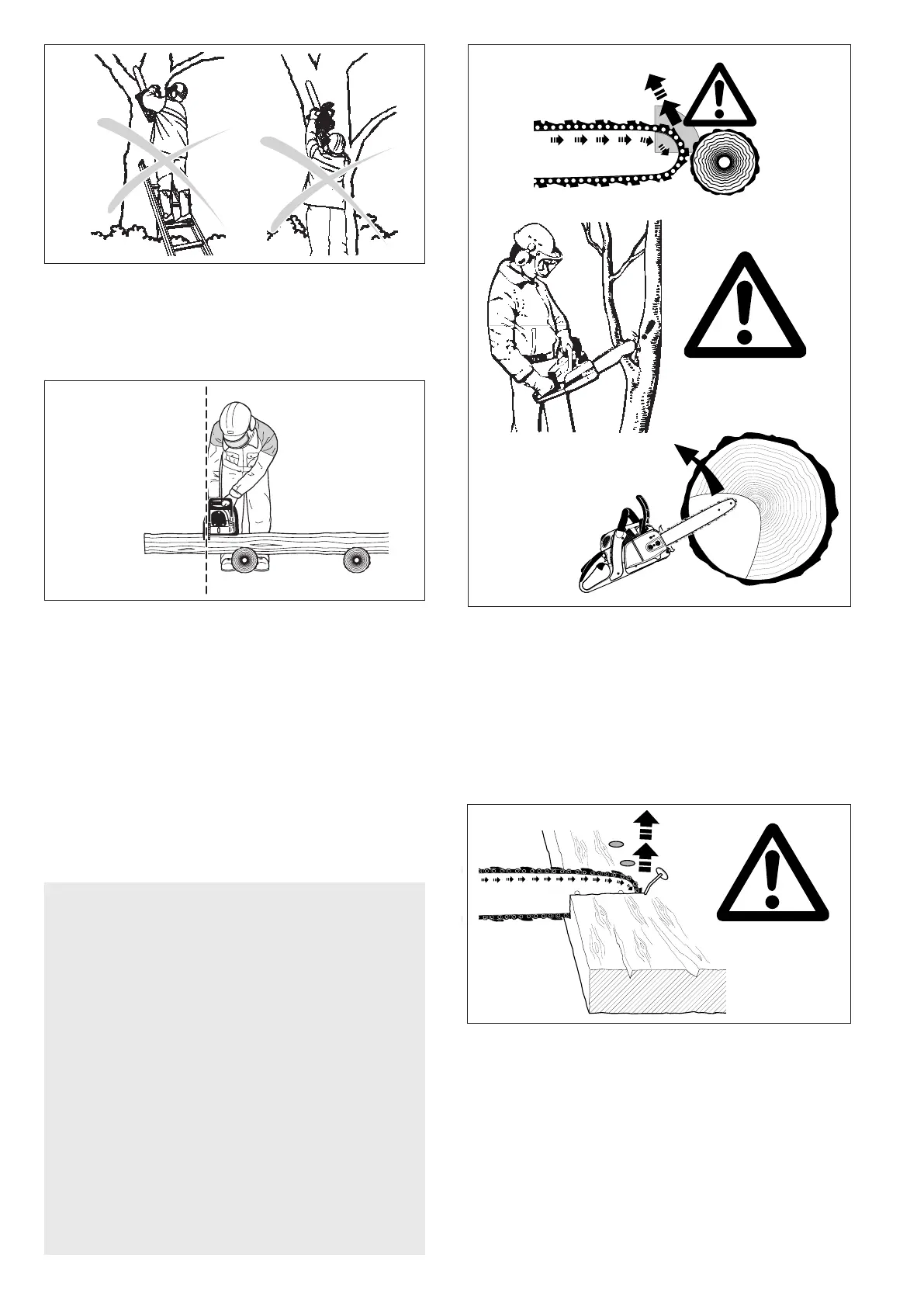 a rm foothold. Never work on a ladder, in a tree or on