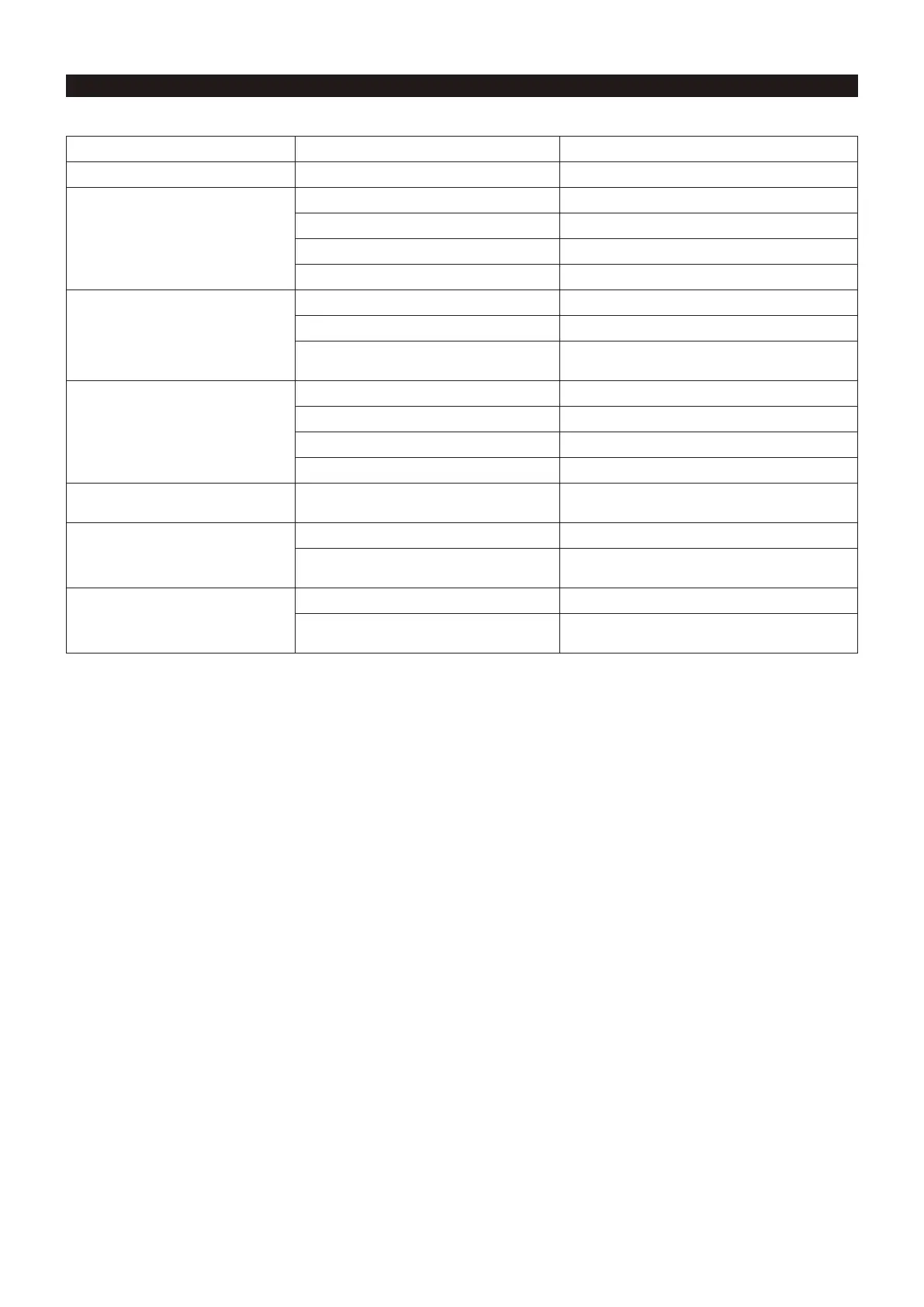 Malfunction status Possible cause Remedy
