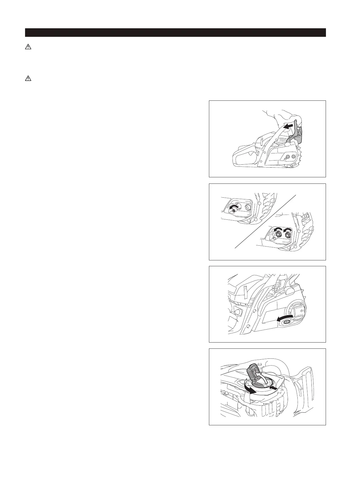 • Schalten Sie die Motorsäge nur ein, nachdem Sie diese vollständig