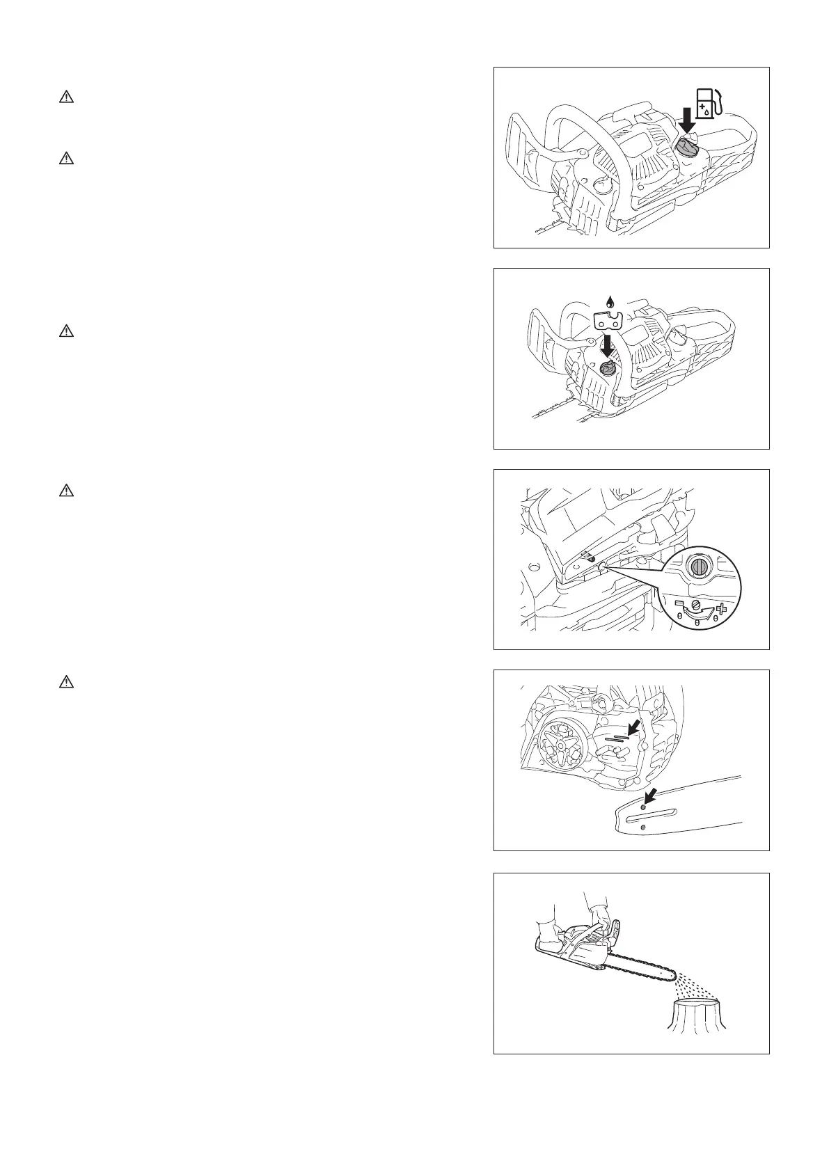 • Überprüfen Sie den Kettenöl-Tank nur bei ausgeschaltetem Motor.
