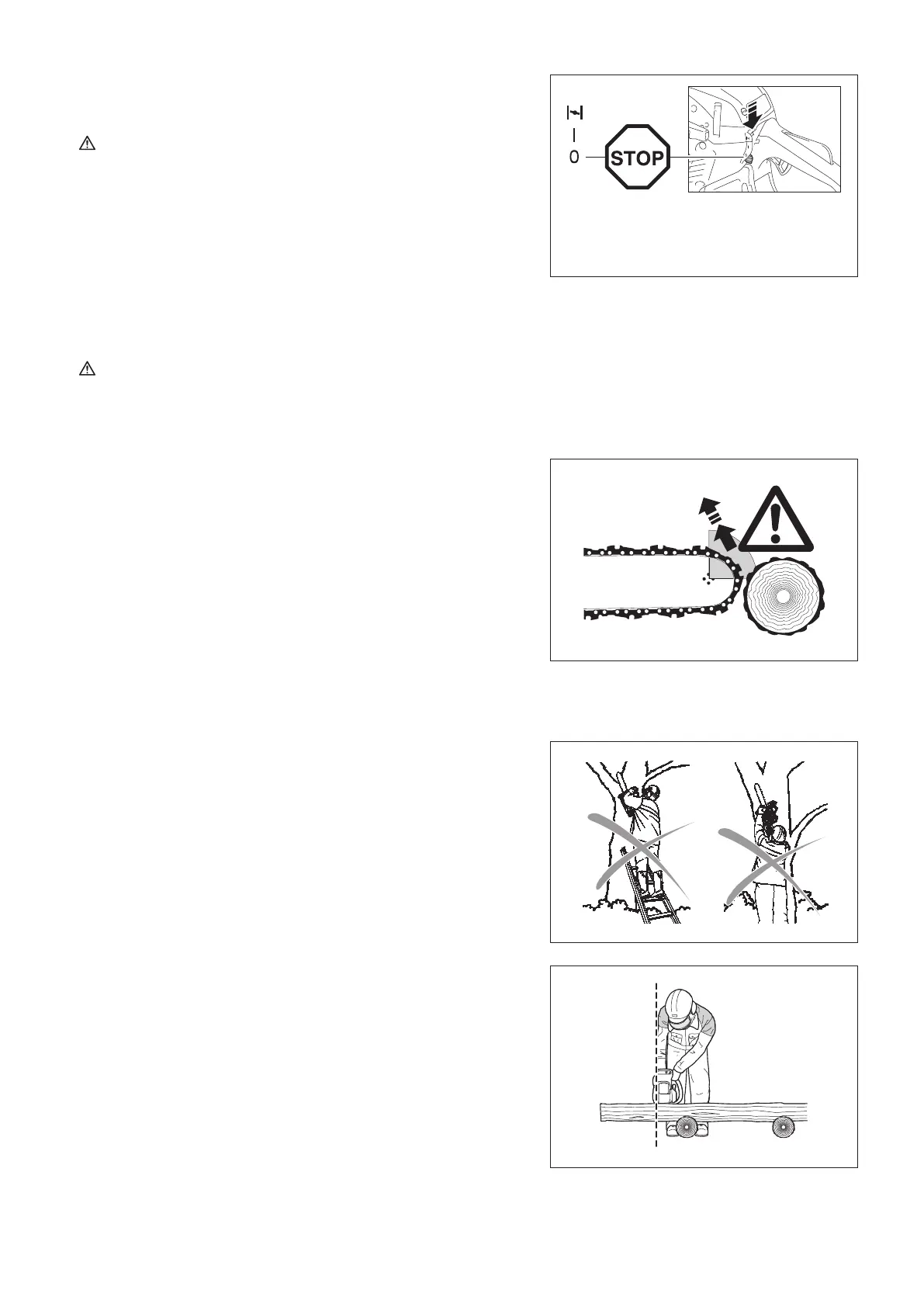 • Klettern Sie niemals auf Bäume, um dort Arbeiten mit der Motorsäge