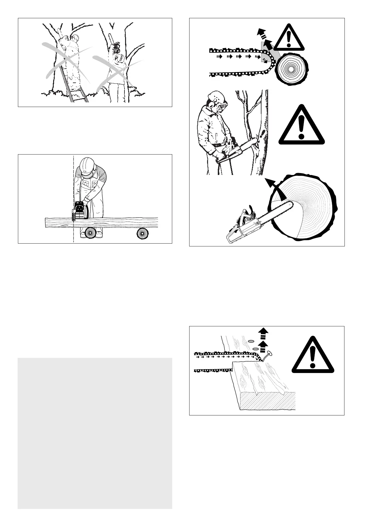 a firm foothold. Never work on a ladder, in a tree or on