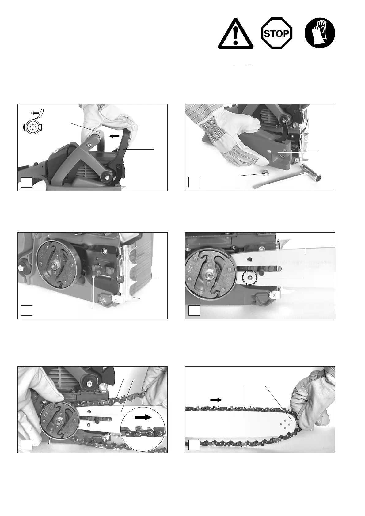 ‑ Release the chain brake by pulling the hand guard (A/1)
