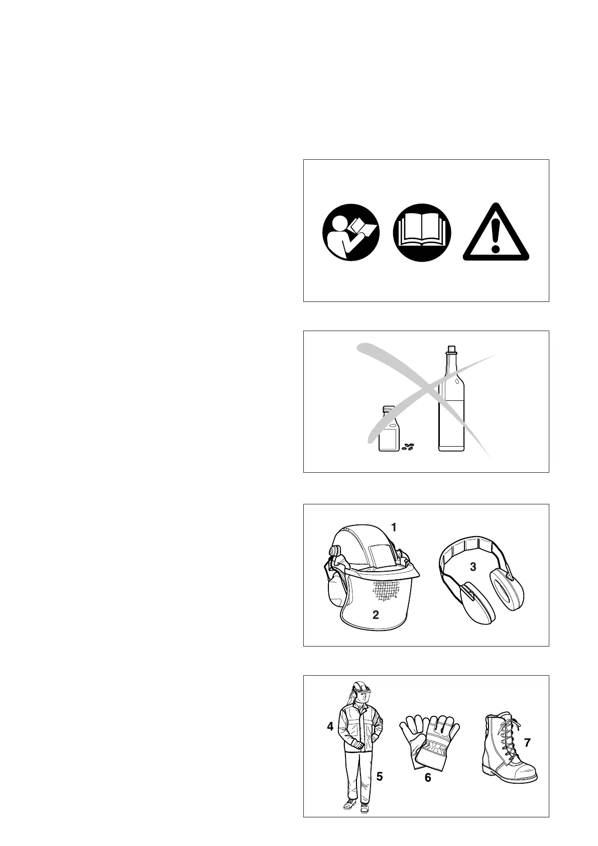 ‑ Never use the chain saw after having consumed alcohol, drugs
