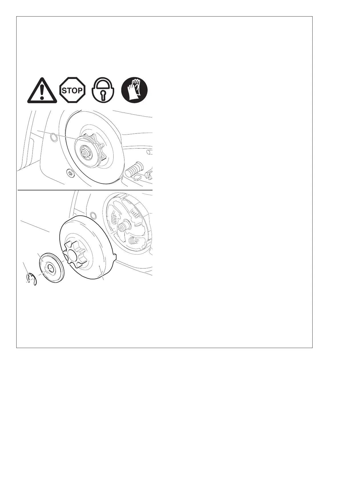 When changing the type of chain, the complete clutch drum (12) must be changed to t the different chain. If neces-