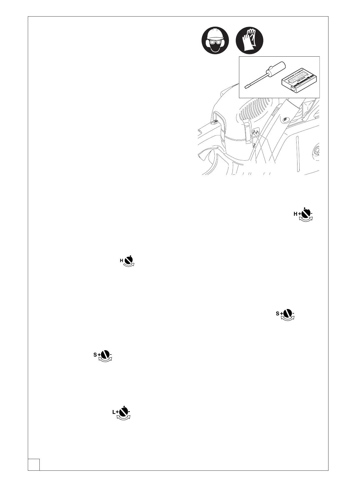 d’échappement, les vis de réglage (H) et (L) du carburateur sont