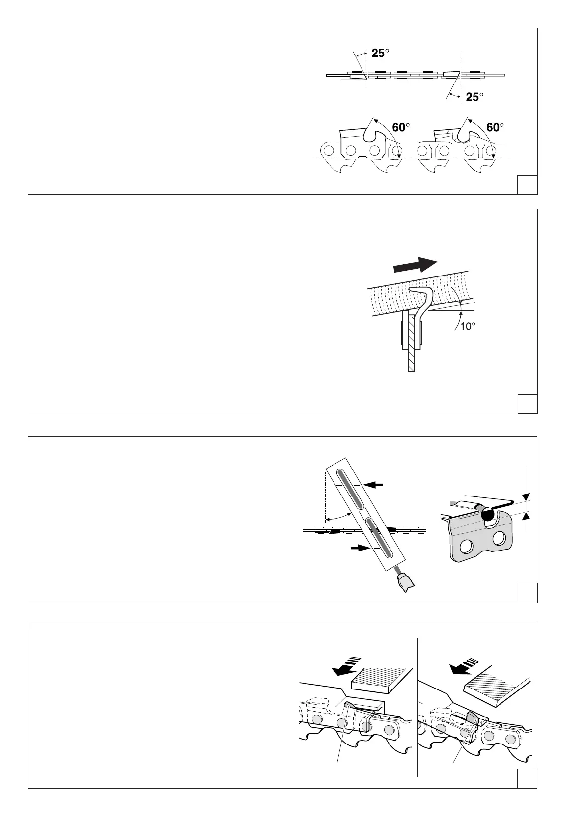 L’angle d’affûtage 25° doit être identique pour toutes les dents