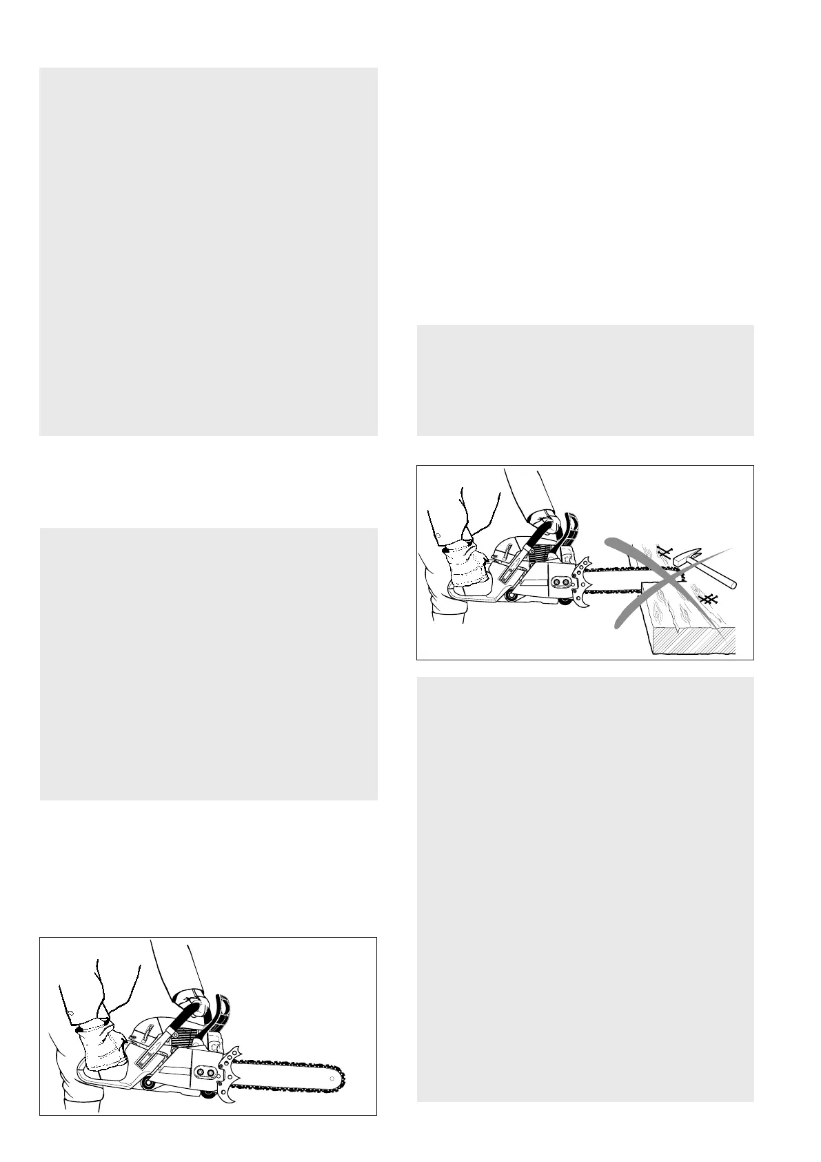 la tronçonneuse à deux mains. Posez la main gauche