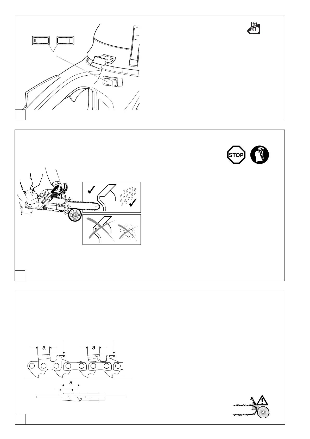 chaîne de sciage, le moteur doit être impérativement arrêté
