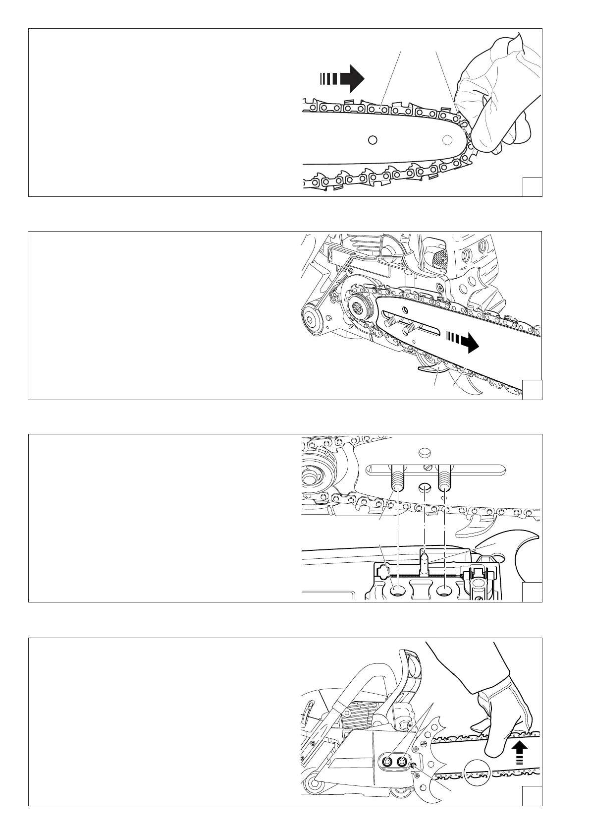 Pull the chain (6) around the sprocket nose (8) of the guide
