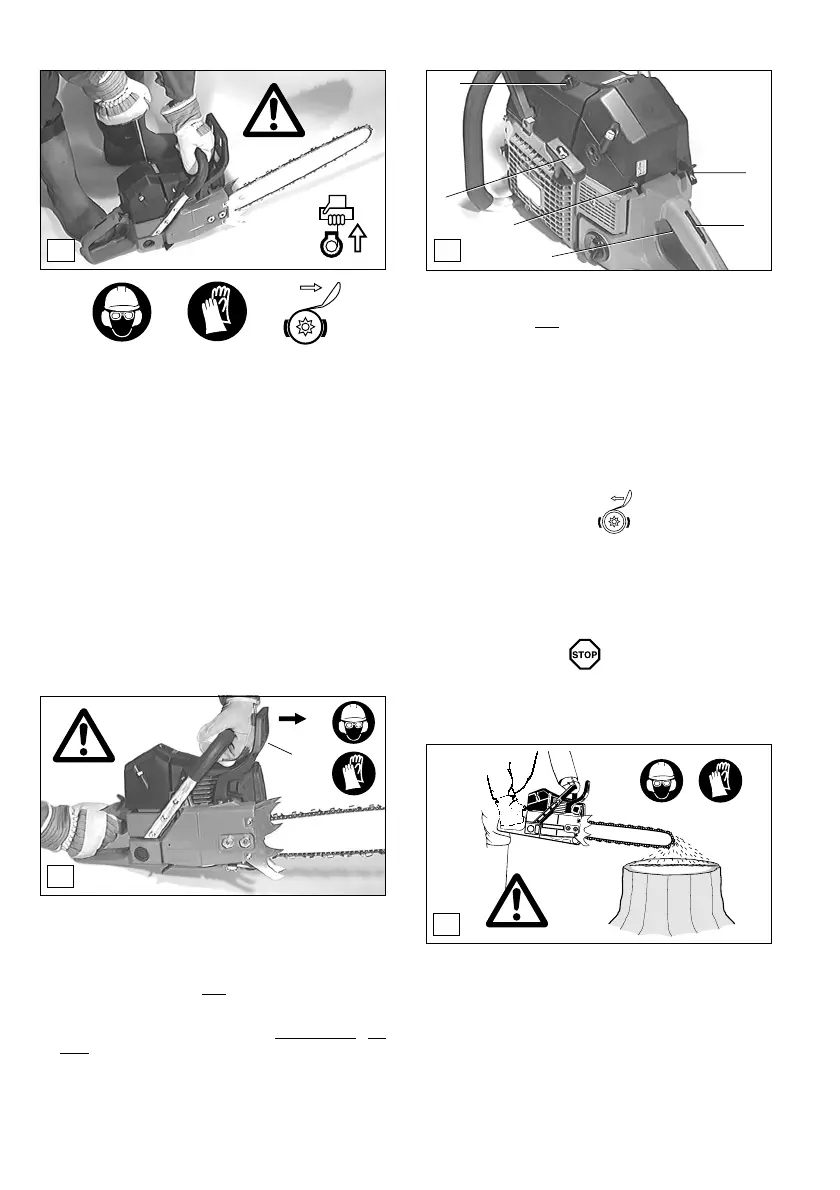 - Hold the running chain saw approx. 15 cm above a trunk or