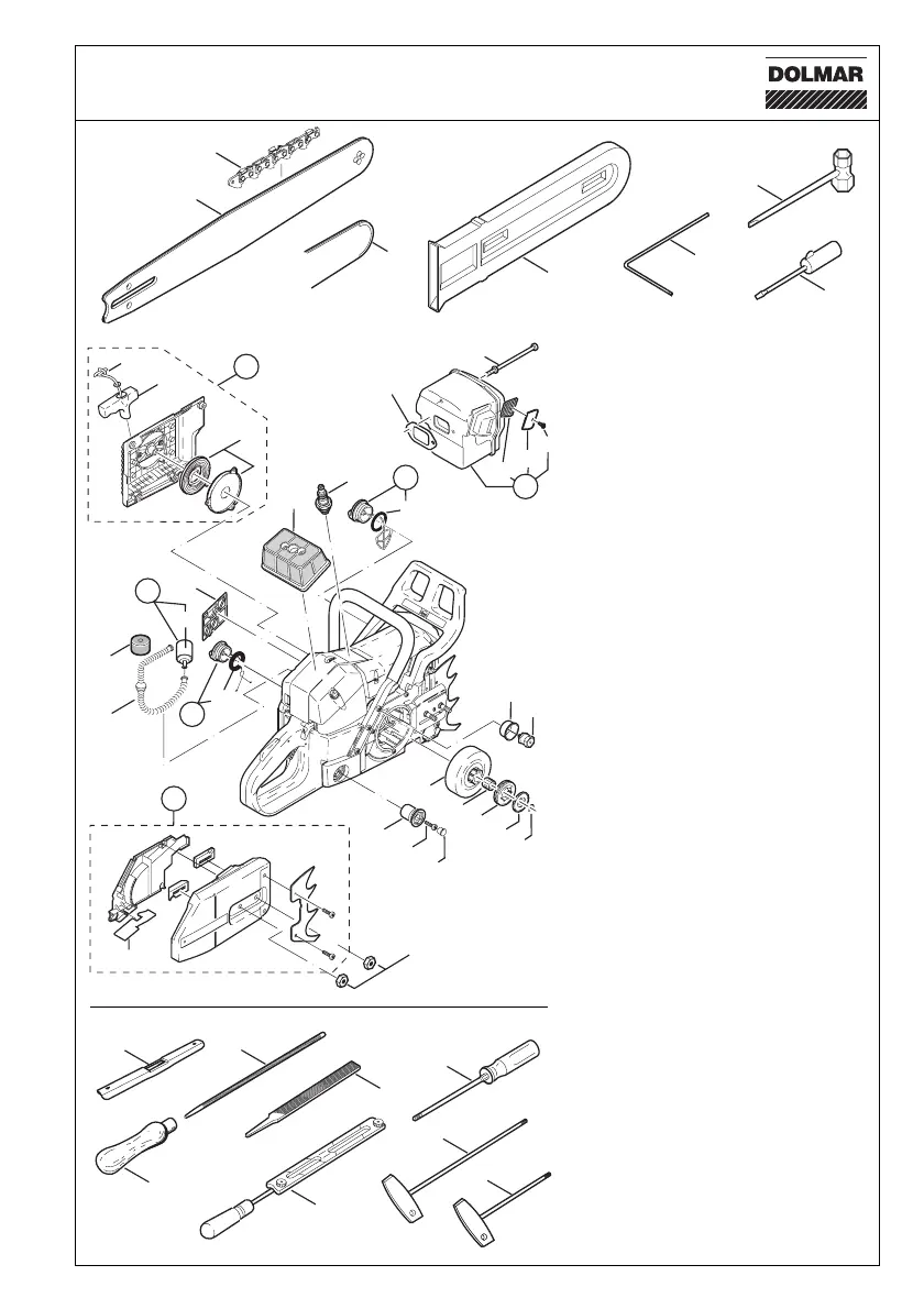 Use original DOLMAR spare parts only. For performance of repairs and replace-