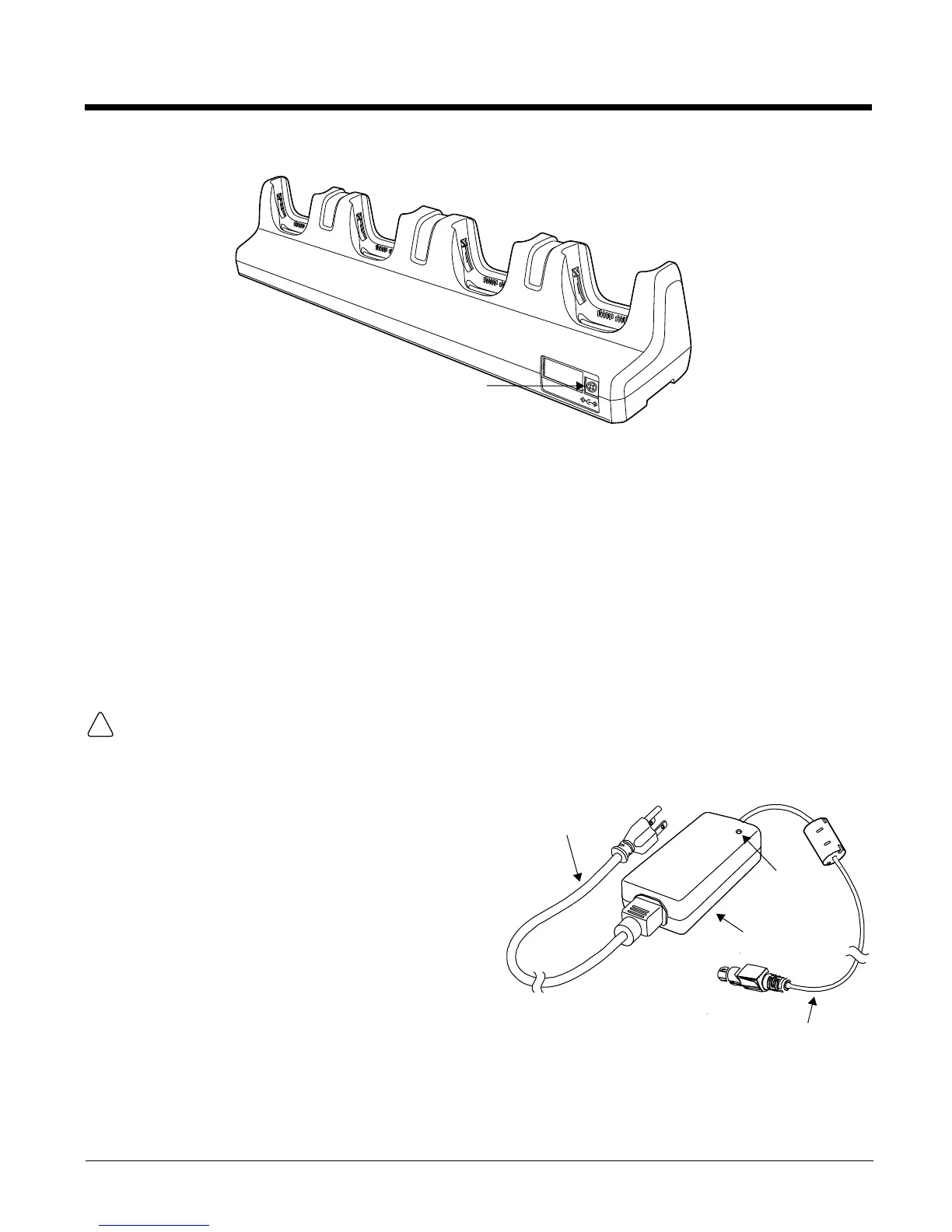 The terminal requires 12 Volts DC input for battery charging; the power adapter on the power cable con-
