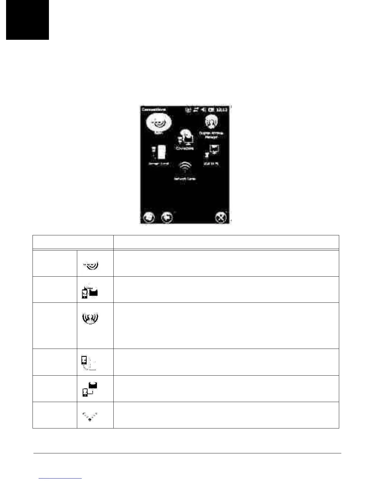 Connections Opens Microsoft’s connections manager. See Connections Manager on page 8-4.