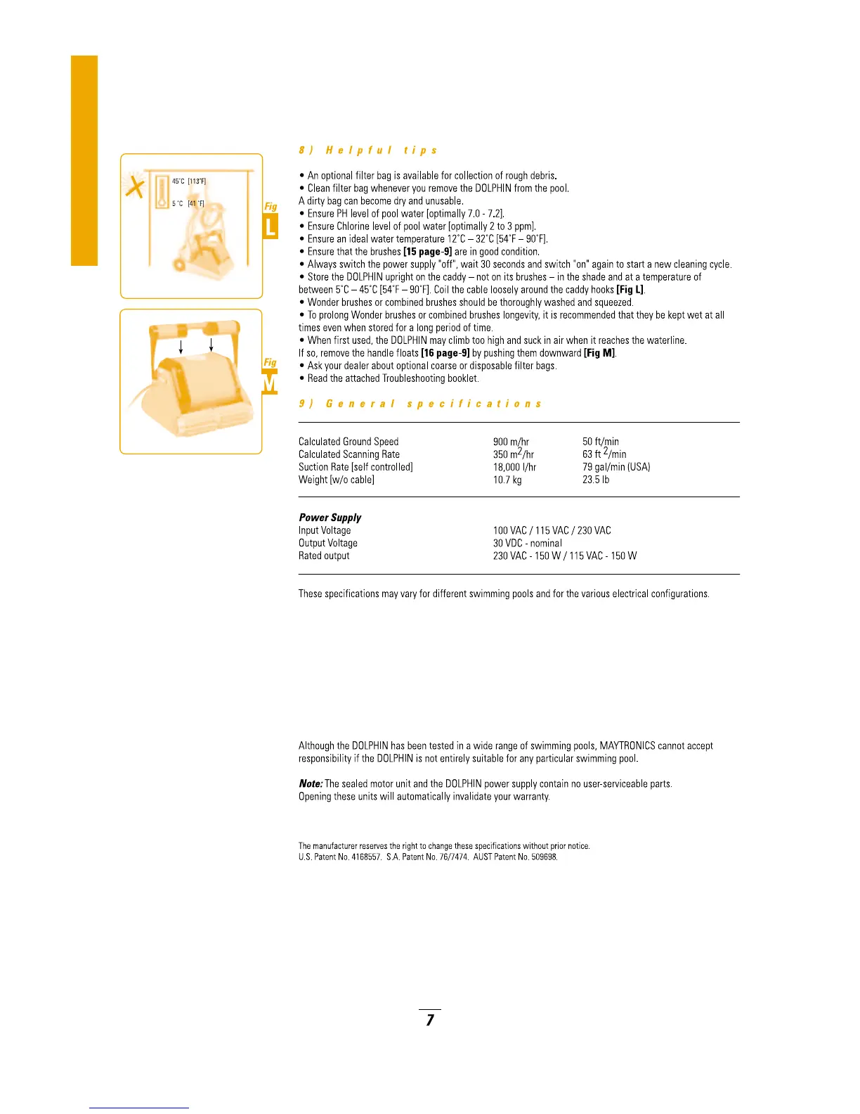 Dolphin Dynamic PRO X - Helpful Tips; General Specifications