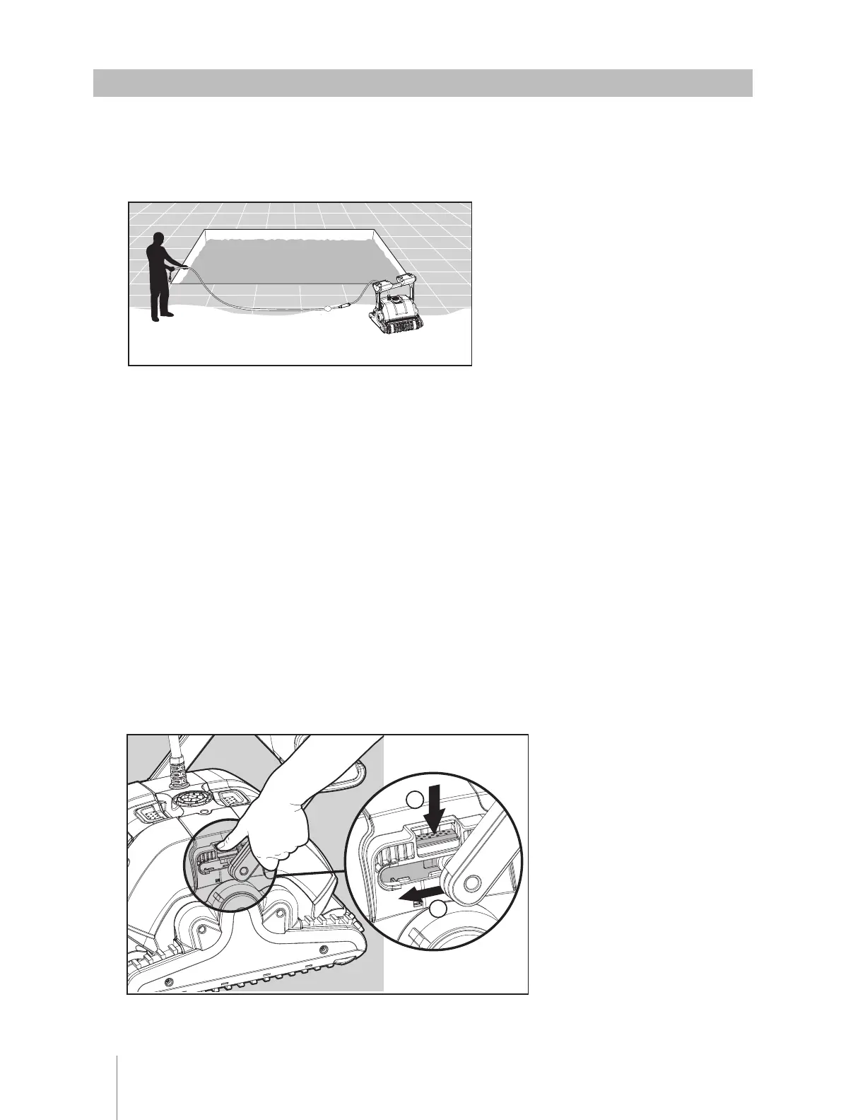 The robot’s handle should be adjusted and locked diagonally in order to ensure optimum cleaning