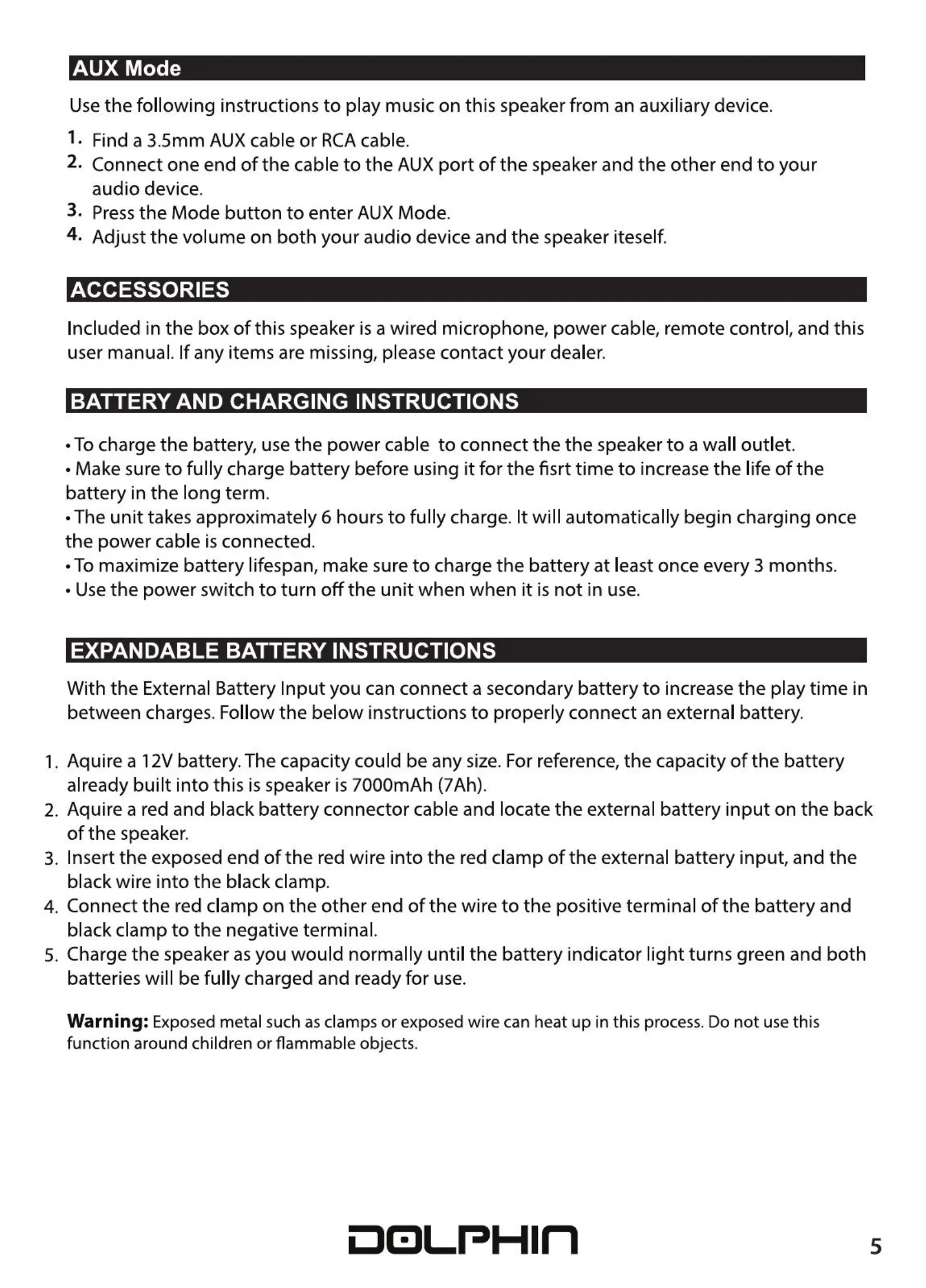 •To charge the battery, use the power cable to connect the the speaker to a wall outlet.