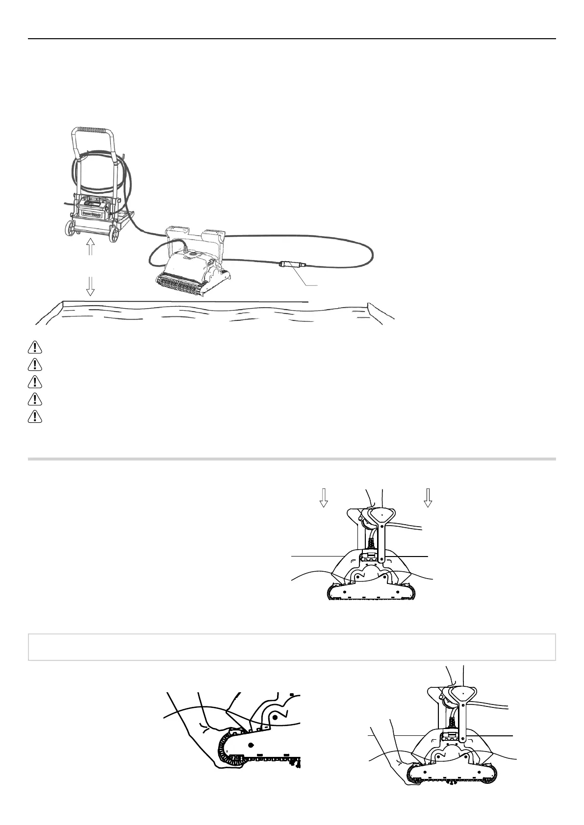Ne branchez pas l’alimentation avant d’avoir placé le robot nettoyeur dans l’eau.