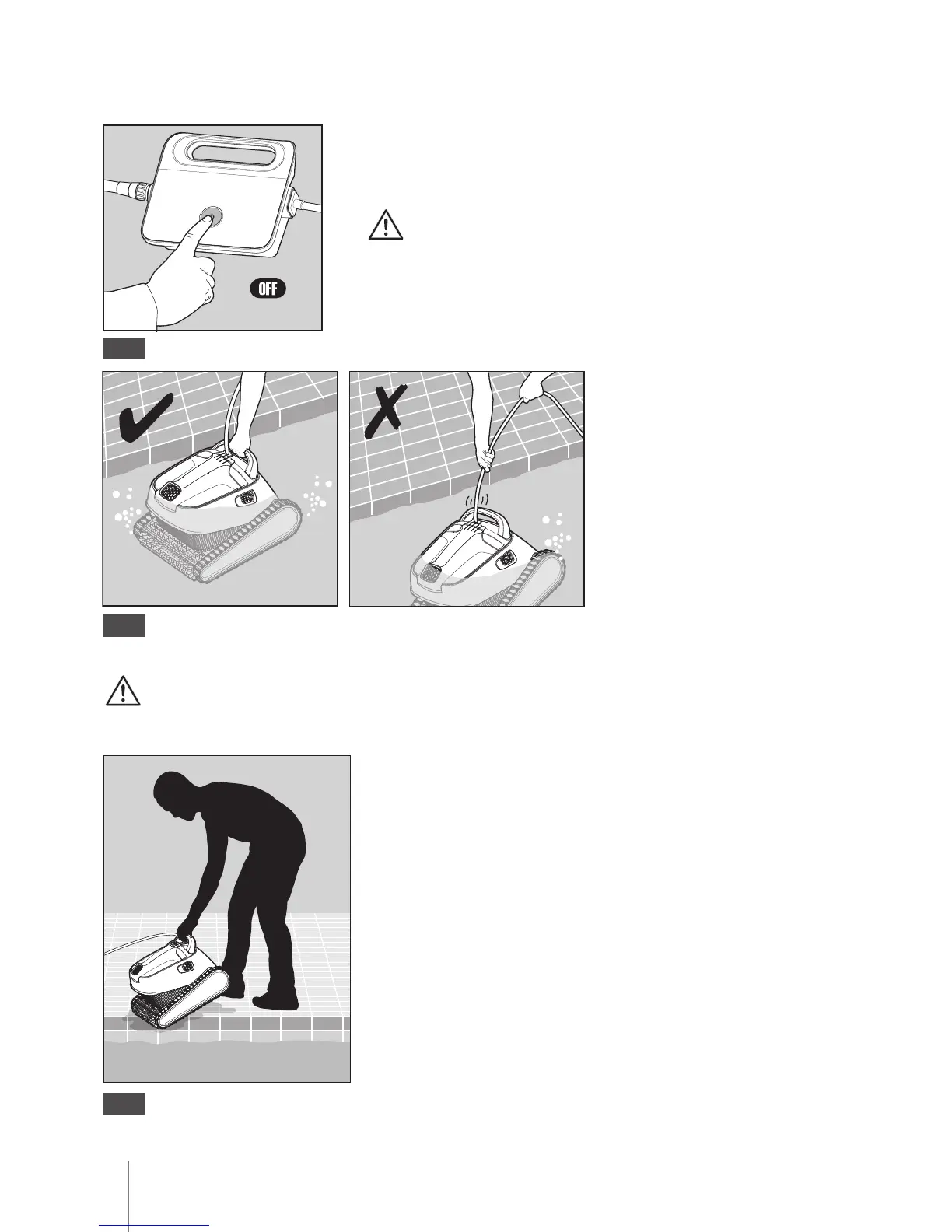 DO NOT PULL THE POOL CLEANER FROM THE POOL USING THE CABLE.