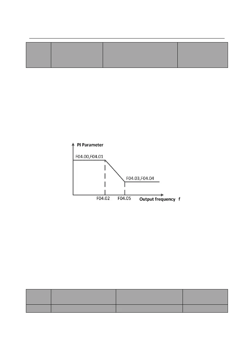 frequency (F04.02), the proportional gain is F04.00 and the integral time is
