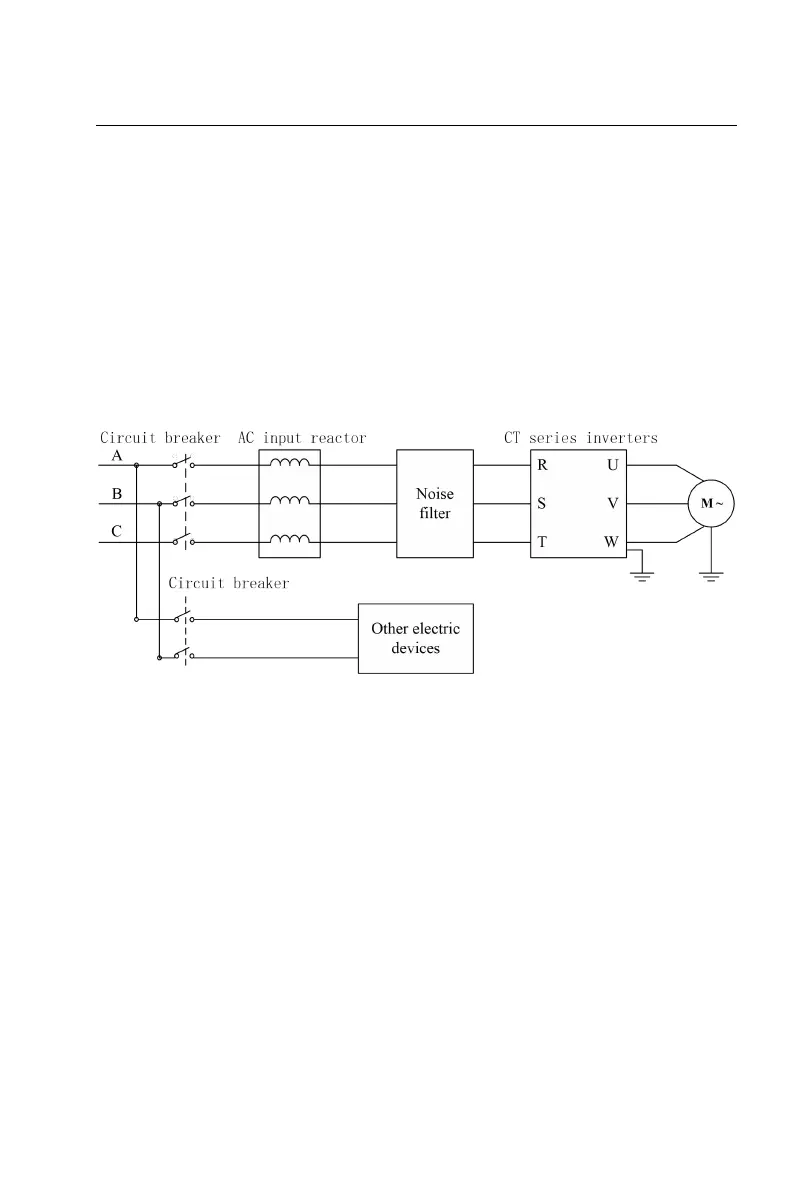 The CT100 inverter of 15kW~37kW is built-in DC reactor. DC reactor can