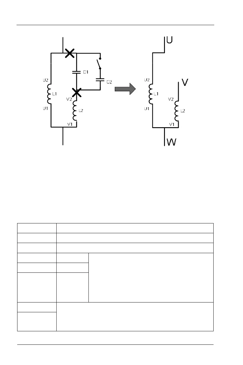 inverter, connect U2 end of running winding to U phase output and connect V2 of starting